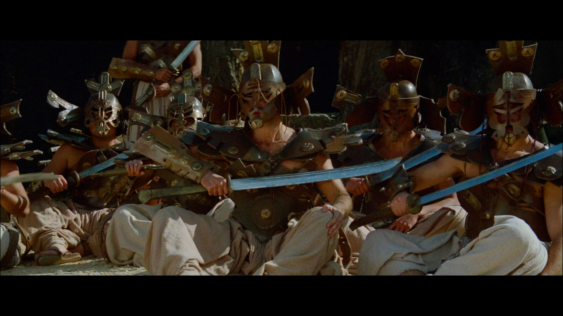 finish with a heavy teal and urine color scheme that's impossible to watch for more than a couple of minutes. For what it's worth, that release (which has a "remastered" Blu-ray for good measure) comes with English or French 5.1 DTS-HD MA audio plus French or German 2.0 mono with English, French and German subtitles. Both previous featurettes are here plus the original trailer, a new trailer to show off how godawful the "restoration" looks, and in the sole saving grace of the release, the 2020 Italian doc Renato Casaro: The Last Movie Painter (97m32s) and a gallery of art devoted to the artist behind numerous