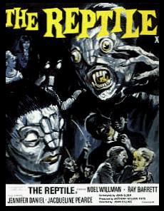 A series of mysterious murders in a small village leads a victim's brother, Harry Spalding (Ray Barrett), to arrive and investigate along with his wife, Valerie (Jennifer Daniel). After snooping around and listeing to local gossip, the couple makes the acquaintance of the secretive Dr. Franklyn (Noel Willman), who resides in a lonely estate with his young daughter, Anna (Jacqueline Pearce). Though powered by John Gilling's usual strong visual and narrative skills, The Reptile only occasionally manages the full throttle force of such other Gilling titles as Plague and Mania. That said, the film does manage to conjure up a sinister, magical atmosphere unlike any other, and Pearce makes for a fascinating, sympathetic character despite her clumsy (but oddly endearing) monster makeup. The actual horror content is fairly low, confined to a few brief and subdued attack sequences, but the overall effect of the film was strong enough that Ken Russell even used it as a partial inspiration for Lair of the White Worm, notably the sensual snake charming sequence.
