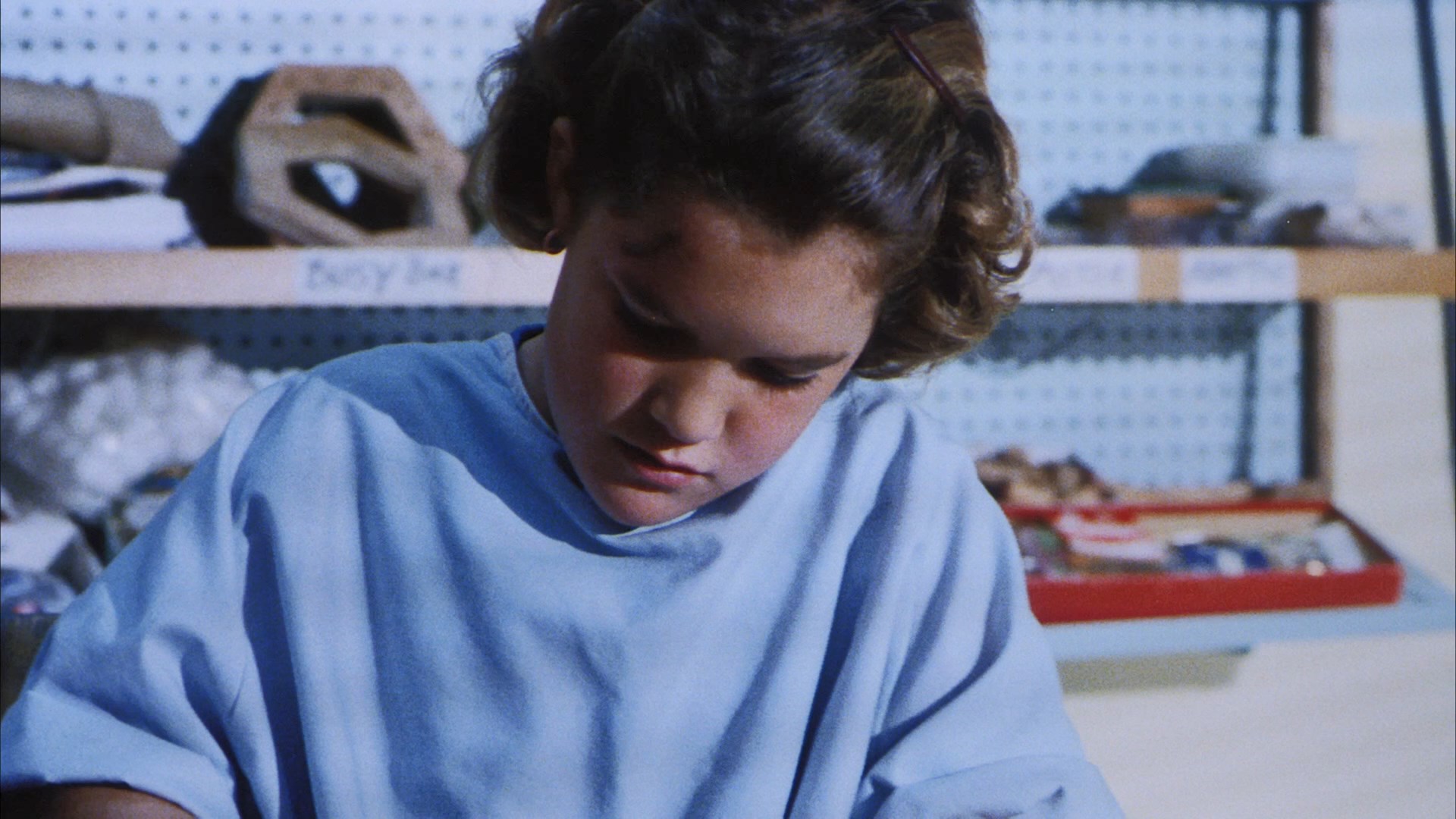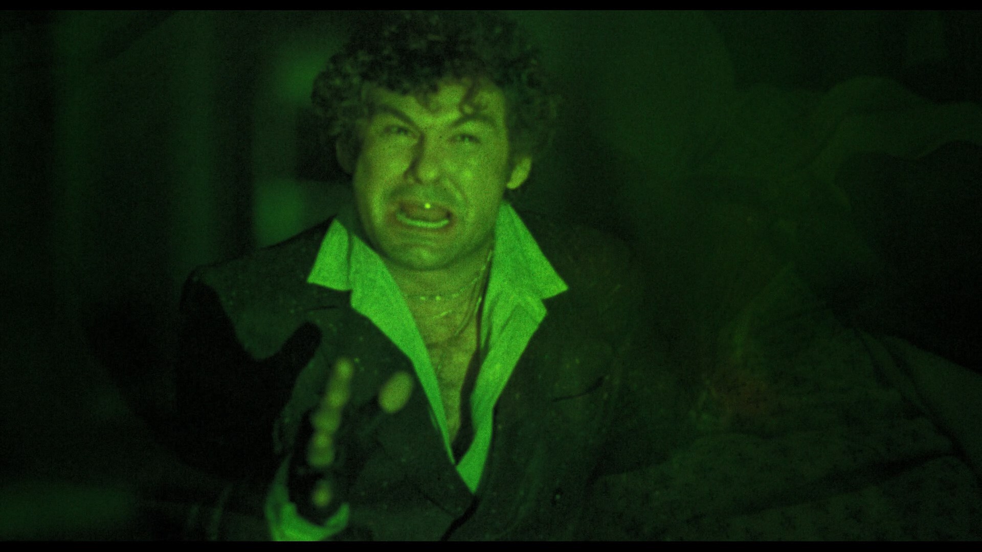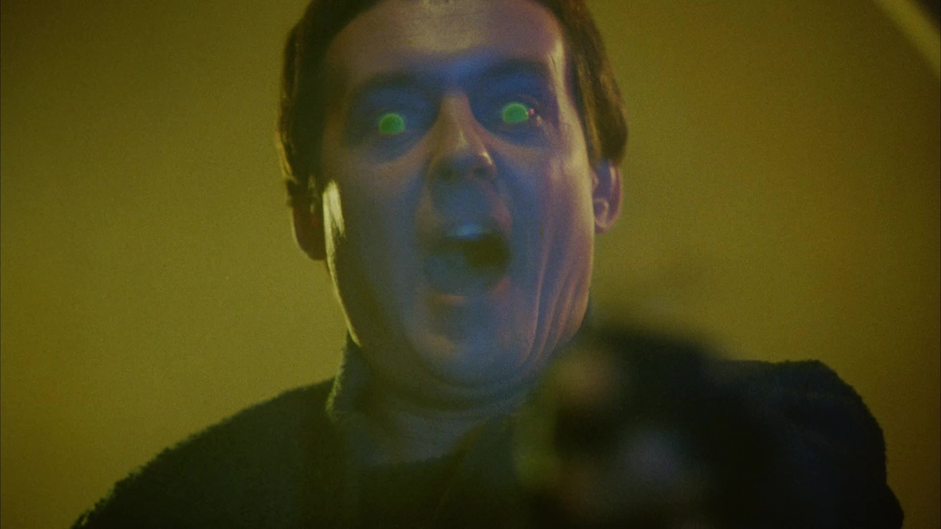 Flash forward six years to 2021 with an insanely loaded three-disc edition released by Severin Films including two Blu-rays and a soundtrack CD featuring the score by Howarth (identical to the relatively recent expanded and remastered release from Dragon's Domain). Disc one features the usual theatrical cut, presented here in a more recent scan featuring more natural color timing (a lot less blue here) and additional image info on the sides. The DTS-HD MA English 2.0 mono track sounds good as always, and this marks the first time the film has come with English SDH subtitles as well. In "Writing Wrongs" (12m18s), co-writer Lee Wasserman reiterates some of the usual tidbits about the film (such as the influence of The Exorcist) while covering his own experiences in film after graduating from Columbia, the process of raising funds for an indie film, the motivation for making a horror movie, the challenge of the very low budget, and his positive impressions of the final result including its ambitious special effects. Wing appears next in "Shock Therapy" (8m6s), explaining how she got into acting via