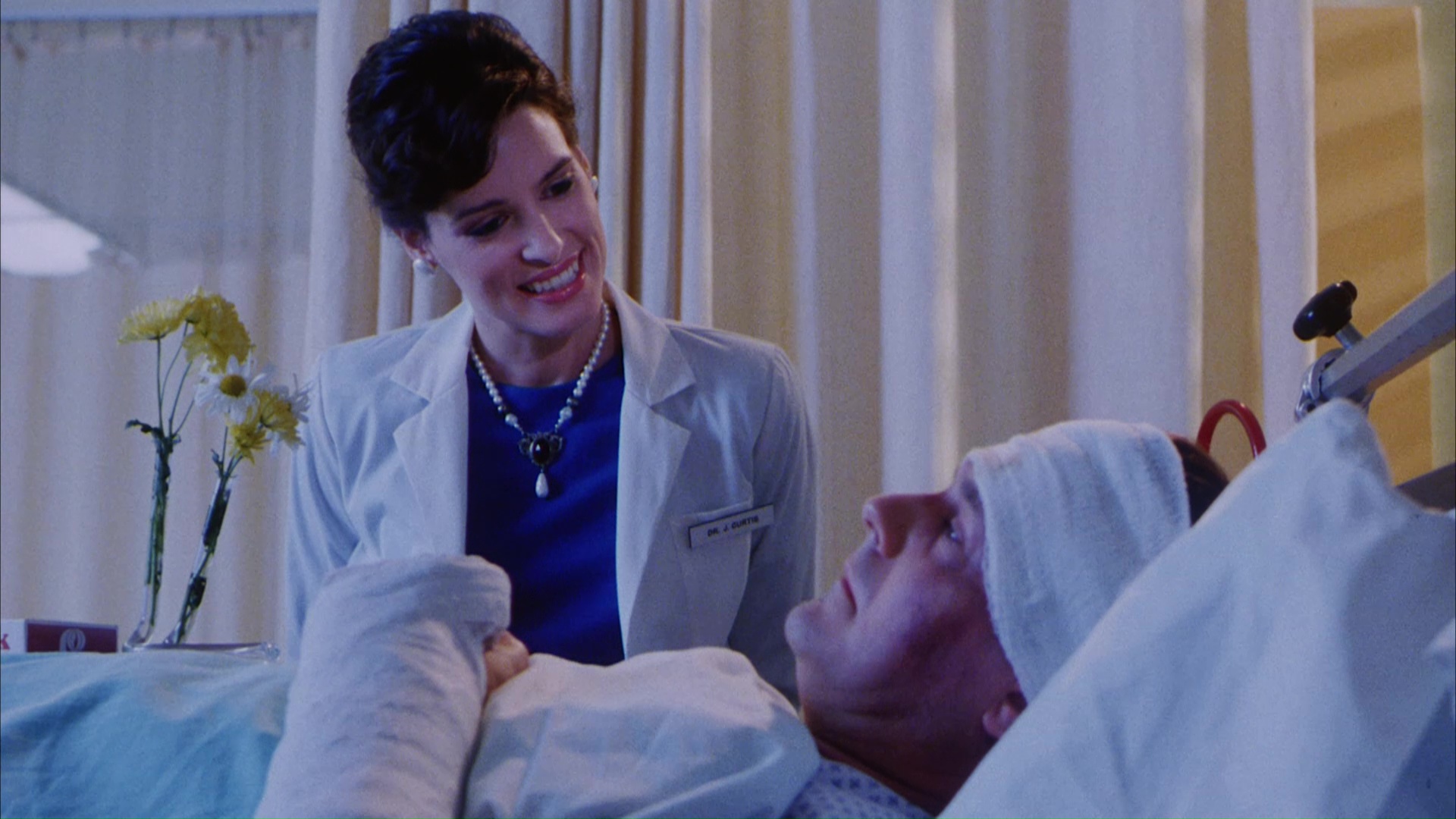 The story is simple: on Halloween night, police cars speed through the streets to find costume onlookers at a building where a jumper is about to take the big plunge. George Miller (WarGames' Lipscomb) just wants to end it all, but when he falls several stories and hits the ground, he doesn't die. In fact, a strange green-hued force seems to enter him, and as time passes, George is tormented by dreams involving a man being brutally gunned down by four faceless people. His psychiatrist, Jennifer (Wing), gets him back on his feet enough to reenter society, but he soon suffers a nightmare in which his eyes turn green and he compels a woman to disembowel herself with a kitchen knife. The next day in the newspaper, he finds out that's exactly what did happen -- and Jennifer's doc boyfriend, Alan (Pomerantz), thinks George might be more than just a damaged soul. Meanwhile George does a little detective work and finds out that another man in town was murdered at the same moment George tried to kill himself...
