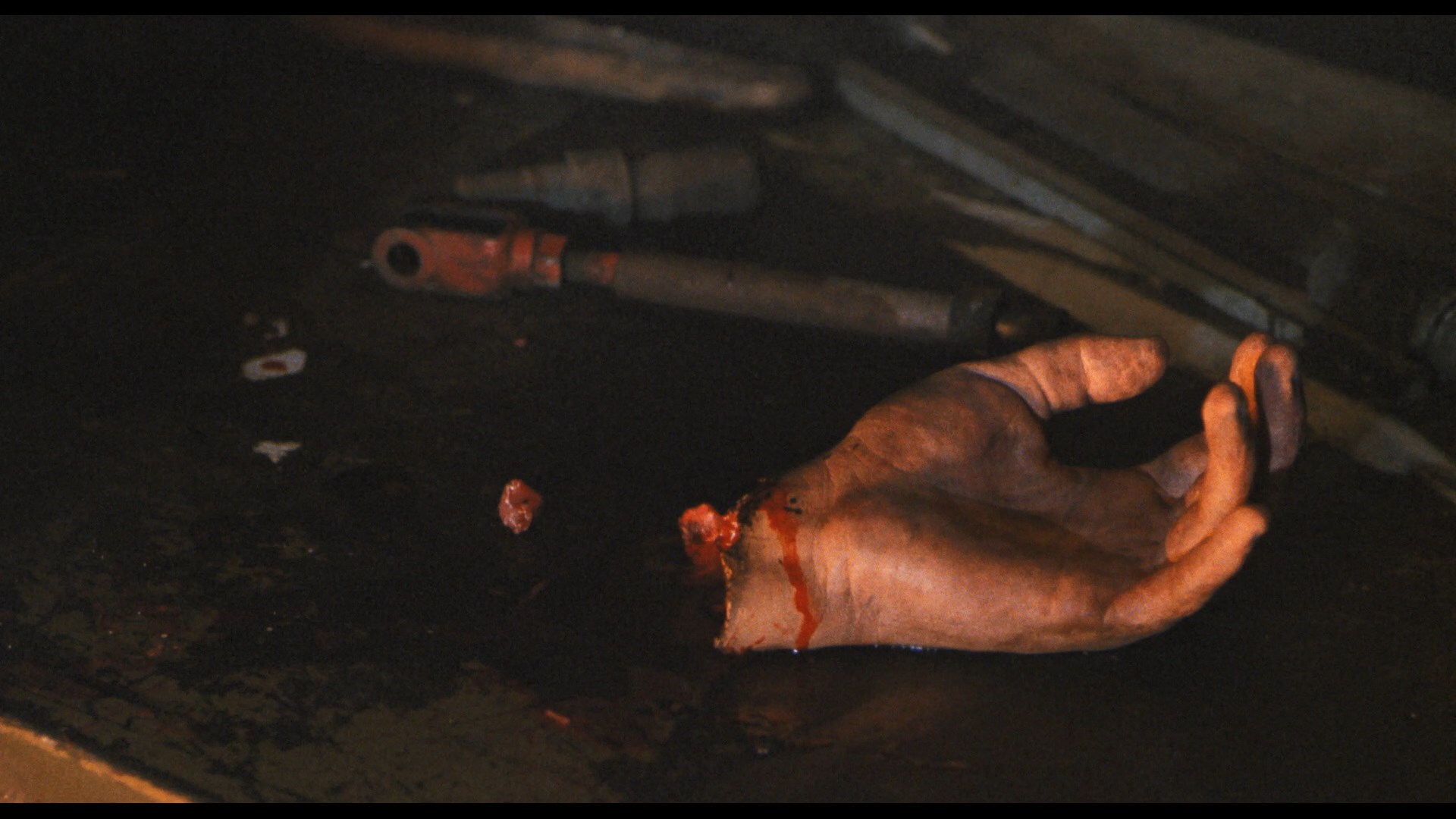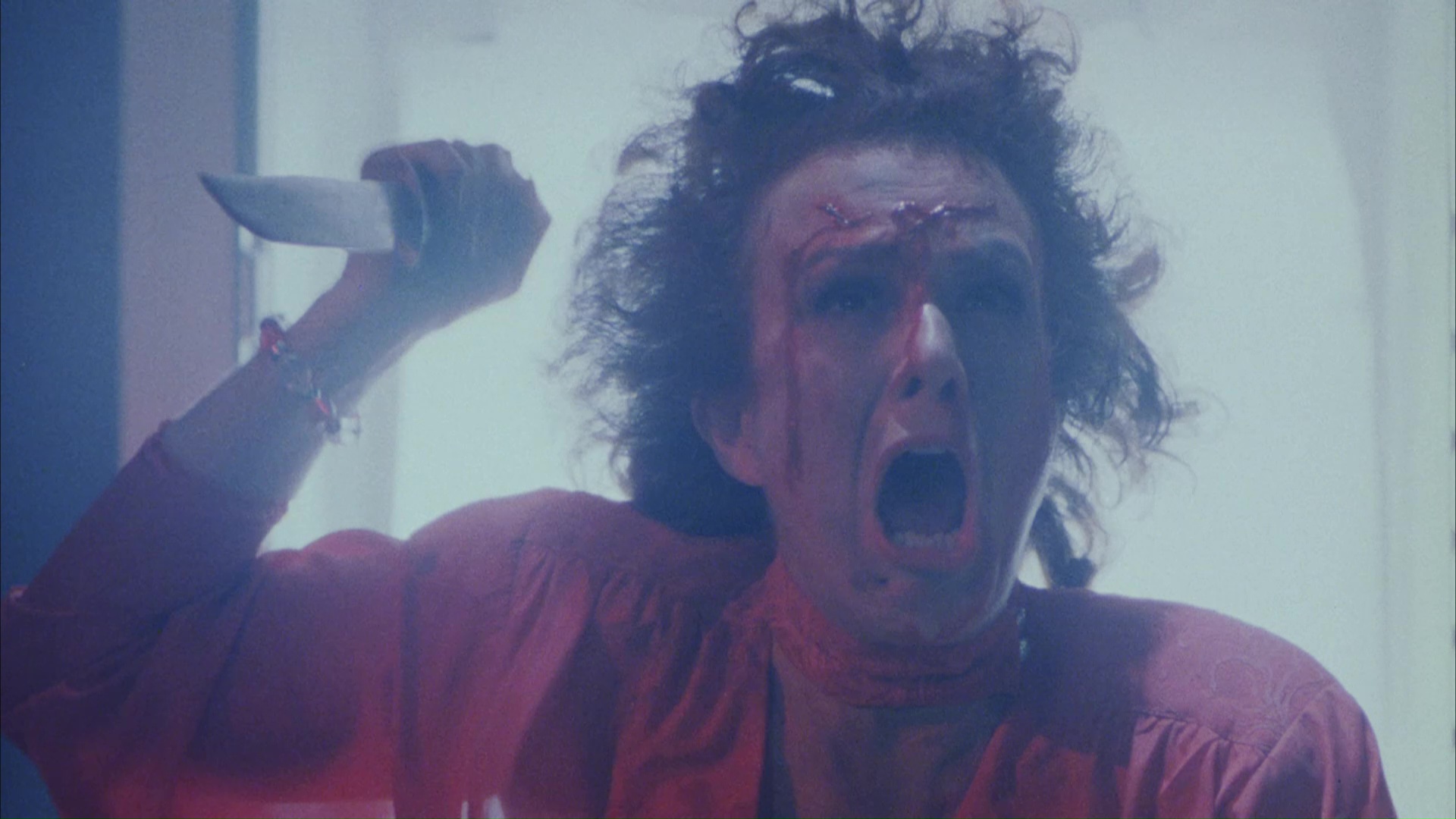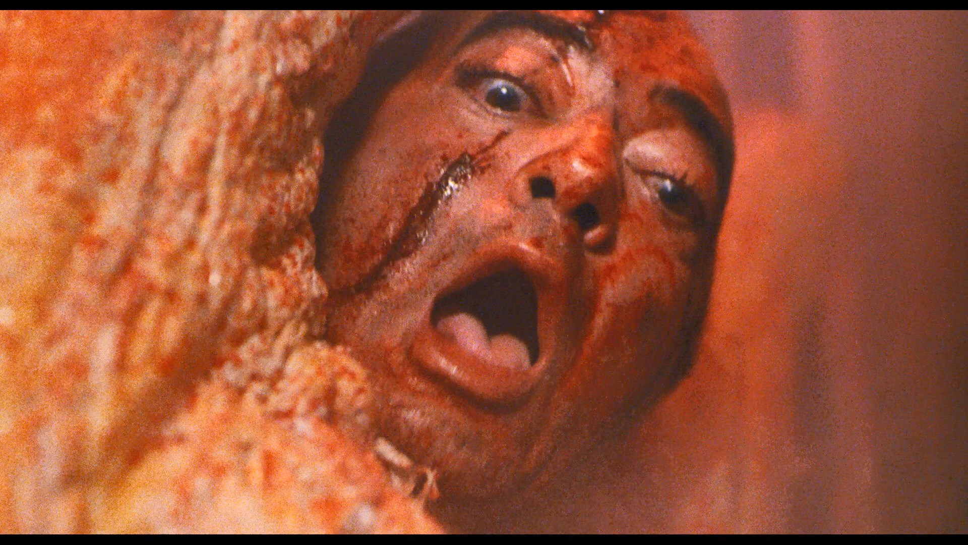 expect from a 1080p rendering much closer to the source, those eye-popping blasts of red and lime lighting really shine through here thanks to the higher resolution. Framing and element quality are identical, while the grain and detail bump up a few notches in terms of clarity. The DTS-HD 2.0 mono audio sounds strong but is obviously hampered by the limited nature of the original mix, while the most substantive extras, the audio commentary and bonus gore footage, are carried over as well. Later that same year, German label OFDb Filmworks released the film on Blu-ray with an interesting wrinkle: a composite edit reinstating all of the excised unrated footage, plus the director's commentary, the deleted scenes as an extra, and a trailer.