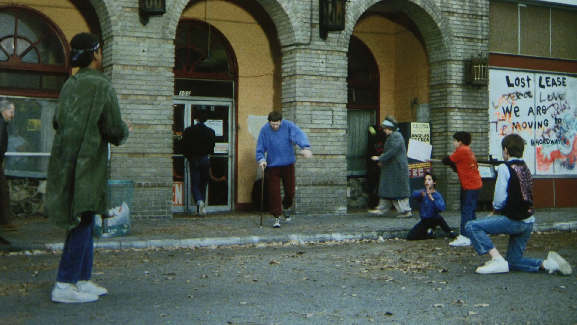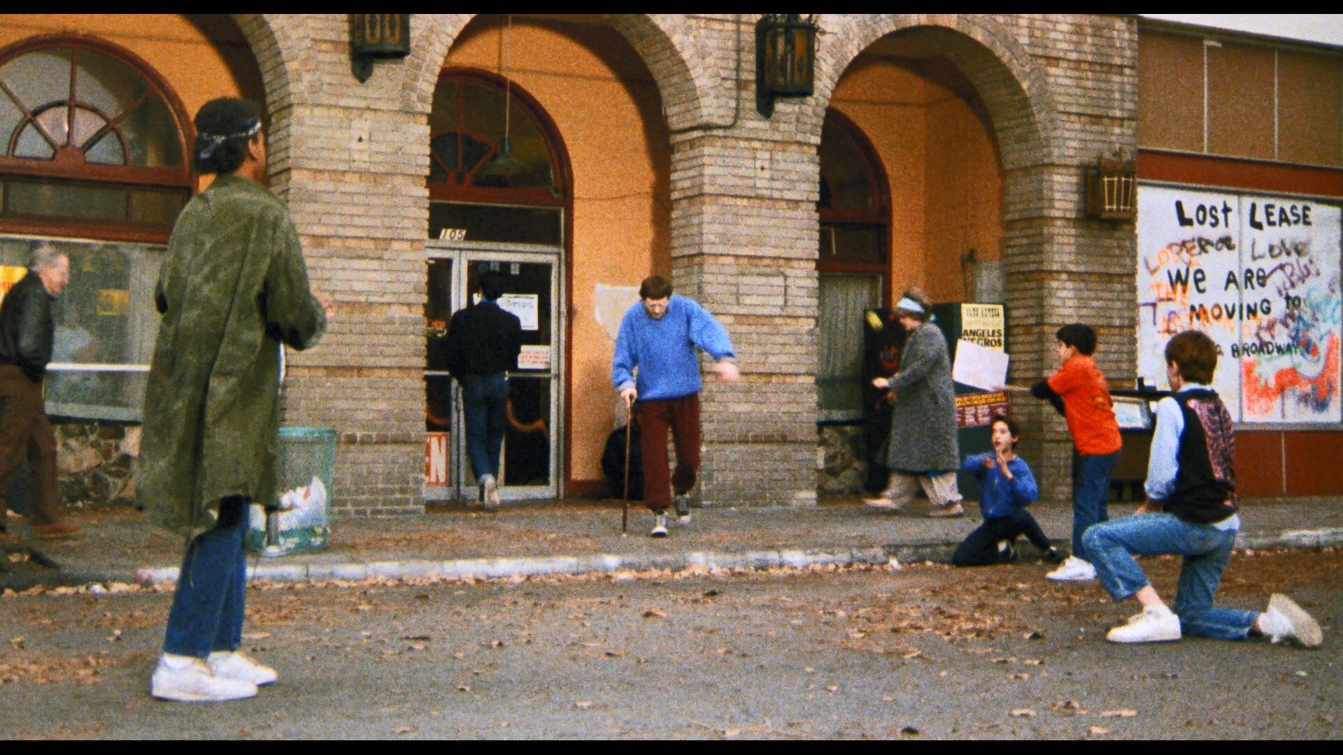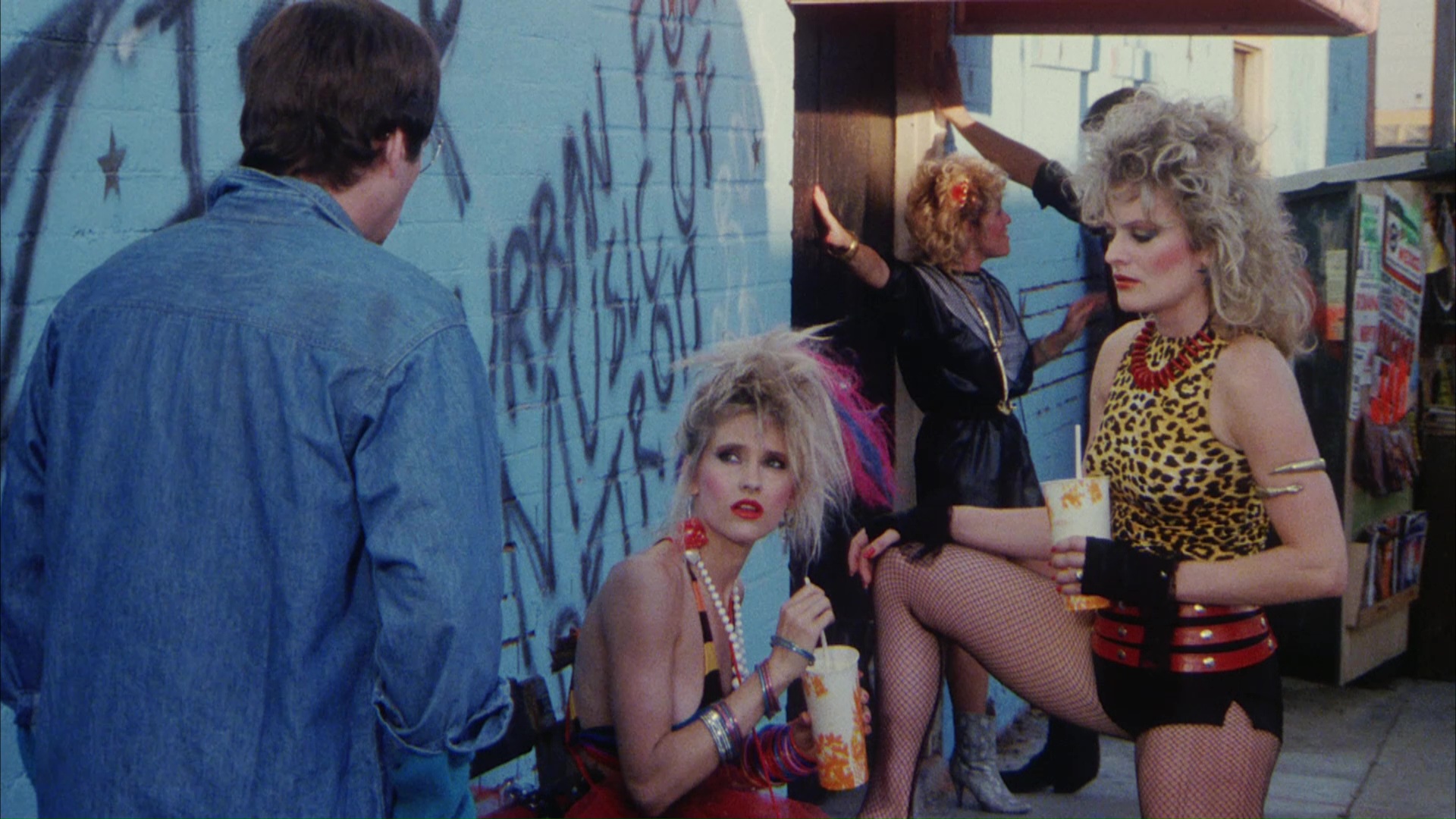 researching the L.A. prostitution scene, adoring the wild colorful hairstyle of her character, and being energized by the environment of the shoot and family atmosphere despite the stressful nighttime shooting on the streets. Actor Mike Muscat turns up next in "Santa Maria, Mother of God, Help Me!" (9m9s), chatting about his career as a character actor after honing his skills as a class clown in high school and discovering drama, a passion that led to a life in front of the camera playing everything from drug addicts to amiable goofballs. Howarth gets to explore the nuances of his own work on the film in "Settling the Score" (8m15s), laying out how the layers of synthesizers rose and fell to establish tension starting in the memorable opening and setting the pace for the rest of the story; he also notes the disappointment of Magar not continuing in the same genre direction after this stylish outing. In "Visions of Vengeance" (7m18s), special effects artist John Eggett talks about his early days working for Cannon and getting to play with lots of new ideas thanks to the script for this film that called for some pretty outlandish creative concepts that had to be handled very carefully to avoid any harm. (Note that the volume on this one is really low, so be ready when the loud menu screen kicks in after it's over!) In "The Art of Getting Even" (6m35s), artist Barry Fahr gets to enthuse about his love for his own "playroom" art studio in downtown L.A. at the time, his accidental involvement with Star Wars and his work on The Gong Show, and his affinity for scenic art that led to creating the "neo-expressionist" paintings seen in this film. Finally in "Living in Oblivion" (9m38s), production designer Robb Wilson King notes how his first jobs working for Roger Corman and Wes Craven got him into the business with a specialty in horror movies that served him well on the demands for vivid, stylized visuals on Retribution. An early Magar short film, Bingo (1m59s), is a quick depiction of bingo hall culture that takes a very Shirley Jackson-style turn; it also features an optional Magar commentary explaining how this "anti-Vietnam" statement came out (though he doesn't mention Wasserman's presence here as a grip of all things). Also included are the trailer (sourced from the usual SD full frame master) and the 6m58s promo reel and a gallery of stills and poster art (2m14s). Disc two features the extended, unrated cut of the film, with that gory extra eight seconds integrated back in from SD but flowing pretty seamlessly all things considered. The image quality otherwise is identical to what's on disc one, and it also comes with a new audio commentary with Magar in conversation with Severin's David Gregory about the making of the film. It's a much smoother listen than the older commentary thanks to better moderator prodding, and though he does tend to lapse into reciting the movie events from time to time, it's a solid overview of how the whole thing came together, got scissored by the MPAA, and ended up as the still-burgeoning cult classic we have with us today.