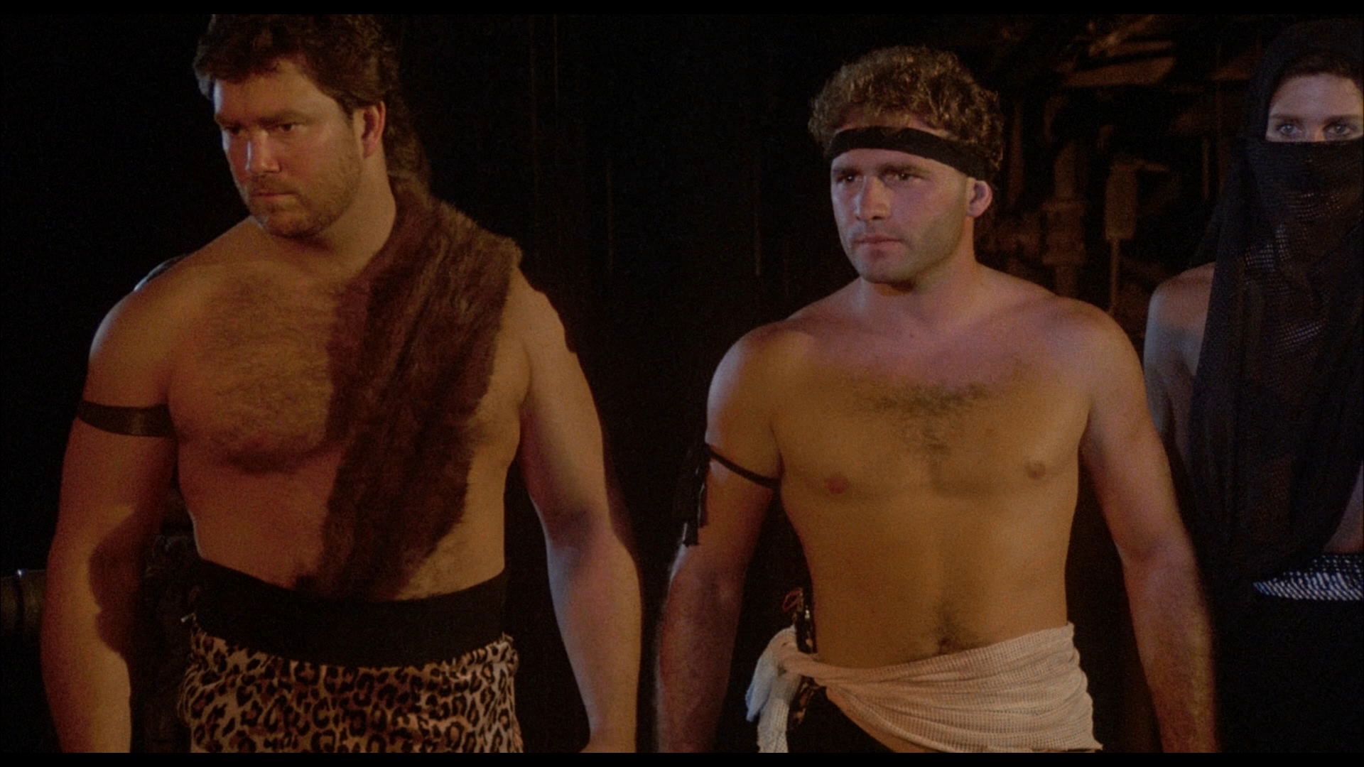 slipcover and 9x11 mini-poster with artwork by Nathan Thomas Milliner while supplies last. The transfer itself looks like the same scan used for HD broadcast though without the significant noise reduction applied by that channel, so it's more detailed here and features finer, more visible film grain. Very colorful and finally legible in the many dark scenes, it manages to show the film off on its best behavior and is likely as good as we'll get it for a very long time. The DTS-HD MA English mono audio is also in great shape, though the actual dialogue recording and delivery isn't exactly the kind of thing that will have audiophiles writhing in ecstasy. A new video interview with actress Jennifer Delora (17m42s) covers her collaborations with Kincaid, her "bad ass" role here as Nyla ("Queen of the Amazon Warriors"), the evolution of her wardrobe, and thoughts on her fellow actors whom she got to hang out with a lot on the threadbare production. Bonus trailers are also included for Panga, Iron Warrior, Shredder, Gas Pump Girls, and The Happy Hooker Goes Hollywood.