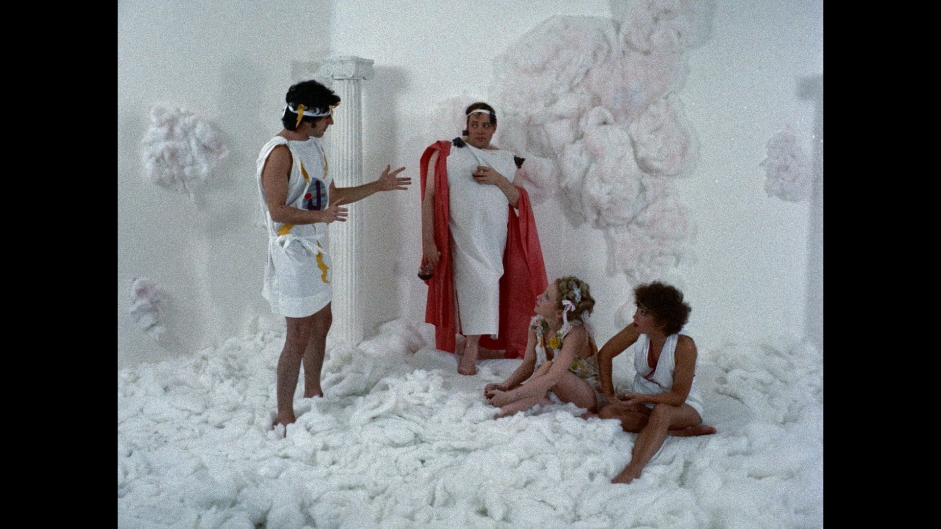 Also on the Blu-ray is the previous year's The Mount of Venus, an insanely cheap but bubbly fantasy as well as a wacko send-up of Roman mythology. Jamie Gillis is in amazing form as Jupiter, commanding a silly and sexed-up roster of gods wreaking havoc with the lives of mortals. Puns, sight gags, and frisky encounters abound with a very enthusiastic cast including a scene-stealing Georgina Spelvin (as Juno), Kim Pope (as Venus), and Eric Edwards again (as a very silly Mercury),