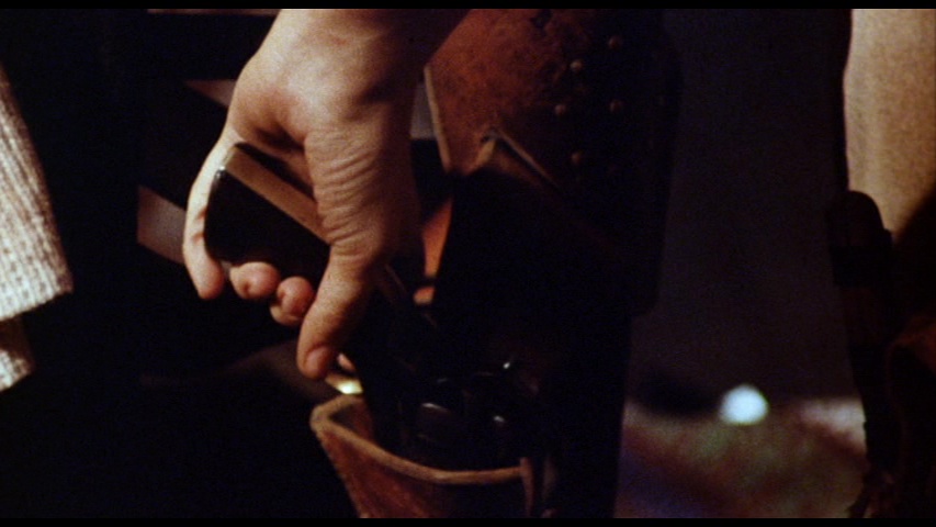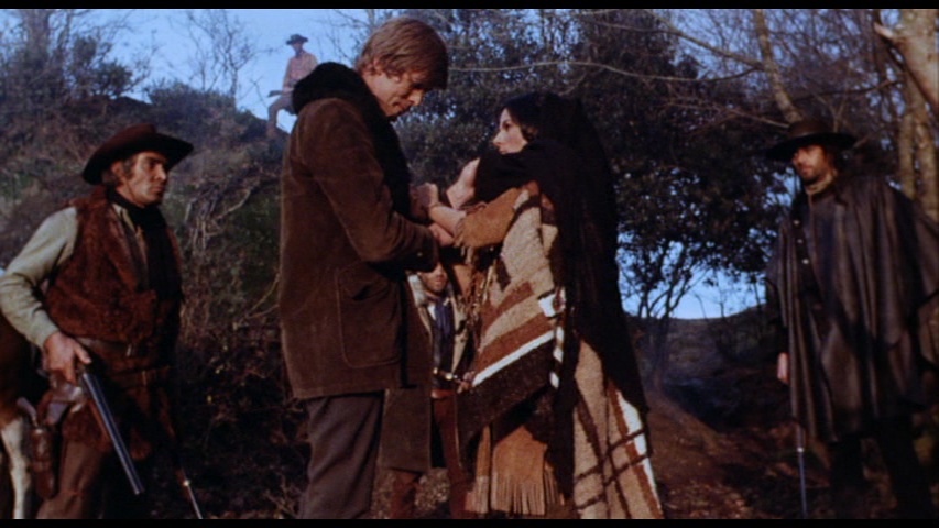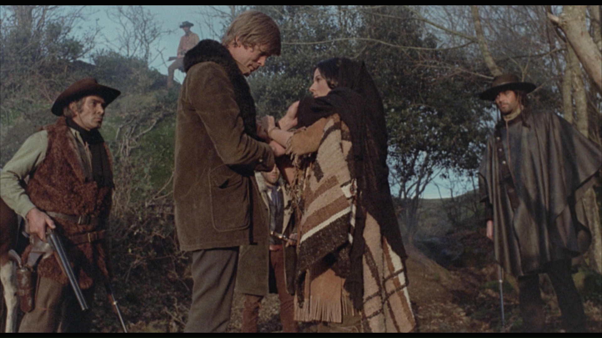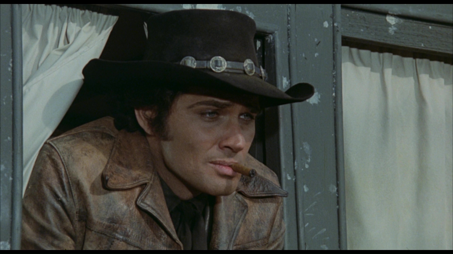 scene at gunpoint are now much darker and moodier than before.) There’s also quite a bit more image info visible in the frame, especially on the right. The LPCM Italian mono track with optional English subtitles (which have an odd thin border around them) is par for the course if you’re familiar with how this film sounds, and in an interesting twist, the surviving passages from the English dub are included as well. The latter is basically worth checking out for curiosity value though as it doesn’t kick in until Chapter 5 (basically a third of the way through the film) and drops out a few times afterwards, with dead silence filling the rest of the track. It’s a pretty clumsy dub job considering the film was at least partially shot in English, barely even trying to match Halsey’s lip movements when he’s speaking. Much more satisfying is the new audio commentary by Mario Bava: All the Colors of the Dark’s Tim Lucas; if you’ve heard his Bava tracks before you know you’re in for a treat as he goes very, very deep into the details of the production including the di Nardo script, Halsey’s tenure in Italy, Bava’s reason for taking the film, Tolo’s modesty during her love scene (as opposed to Southwood, who flashes more than you’d expect for a 1970 western), the zero-budget ingenuity involved with some of Bava’s trademark visual experiments, and the film's status as a response to Sergio Leone as well as a foreshadowing of Duck, You Sucker! The sole video extra is the Italian intermission cards, which were present on past releases but have been set aside separately here.