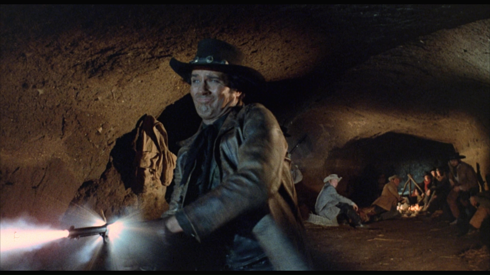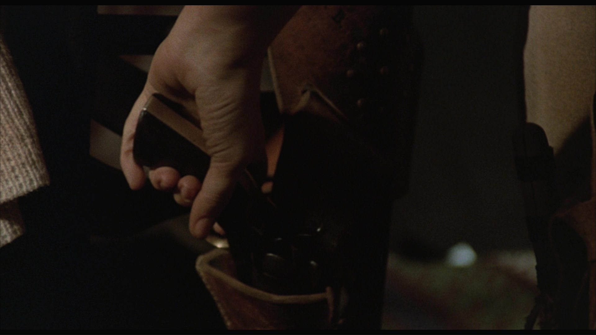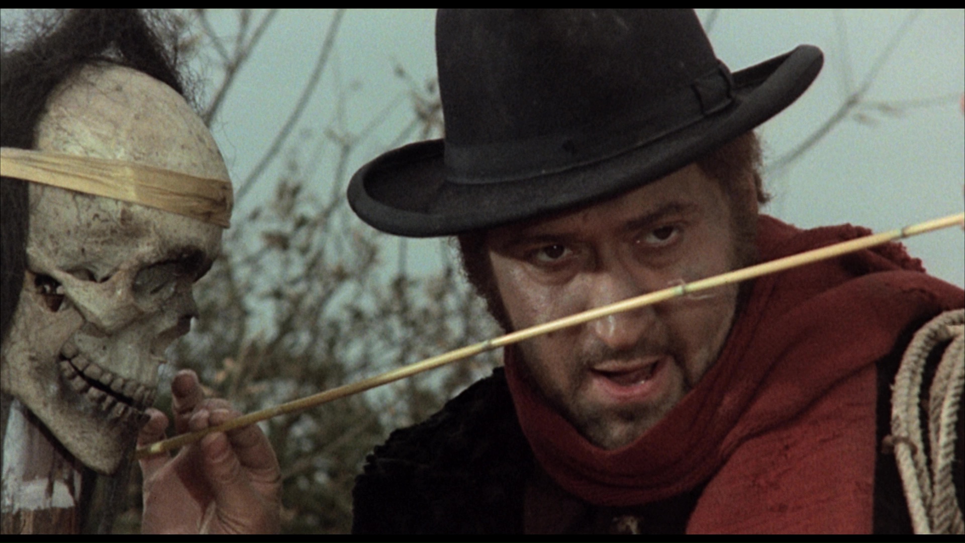 scene at gunpoint are now much darker and moodier than before.) There’s also quite a bit more image info visible in the frame, especially on the right. The LPCM Italian mono track with optional English subtitles (which have an odd thin border around them) is par for the course if you’re familiar with how this film sounds, and in an interesting twist, the surviving passages from the English dub are included as well. The latter is basically worth checking out for curiosity value though as it doesn’t kick in until Chapter 5 (basically a third of the way through the film) and drops out a few times afterwards, with dead silence filling the rest of the track. It’s a pretty clumsy dub job considering the film was at least partially shot in English, barely even trying to match Halsey’s lip movements when he’s speaking. Much more satisfying is the new audio commentary by Mario Bava: All the Colors of the Dark’s Tim Lucas; if you’ve heard his Bava tracks before you know you’re in for a treat as he goes very, very deep into the details of the production including the di Nardo script, Halsey’s tenure in Italy, Bava’s reason for taking the film, Tolo’s modesty during her love scene (as opposed to Southwood, who flashes more than you’d expect for a 1970 western), the zero-budget ingenuity involved with some of Bava’s trademark visual experiments, and the film's status as a response to Sergio Leone as well as a foreshadowing of Duck, You Sucker! The sole video extra is the Italian intermission cards, which were present on past releases but have been set aside separately here.