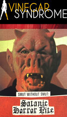 Clocking in at 75m28s, the main program starts with an assortment of drive-in and devilish odds and ends including concession stand ads and trailers for Count Erotica - Vampire and Fanny Hill Meets the Horny Witch. Then we launch into a horror-only edit of the hardcore storefront film Hotter Than Hell, which was previously seen in its XXX form on Vinegar Syndrome's All Night at the Bizarre Art Theatre. Now it's basically a parade of guys in furry devil outfits romping around with some women in an apartment, resulting in a disorienting experience that feels like a cheap sitcom where the cast occasionally flash their genitalia. For what it's worth, despite the "without smut" part of the title, this