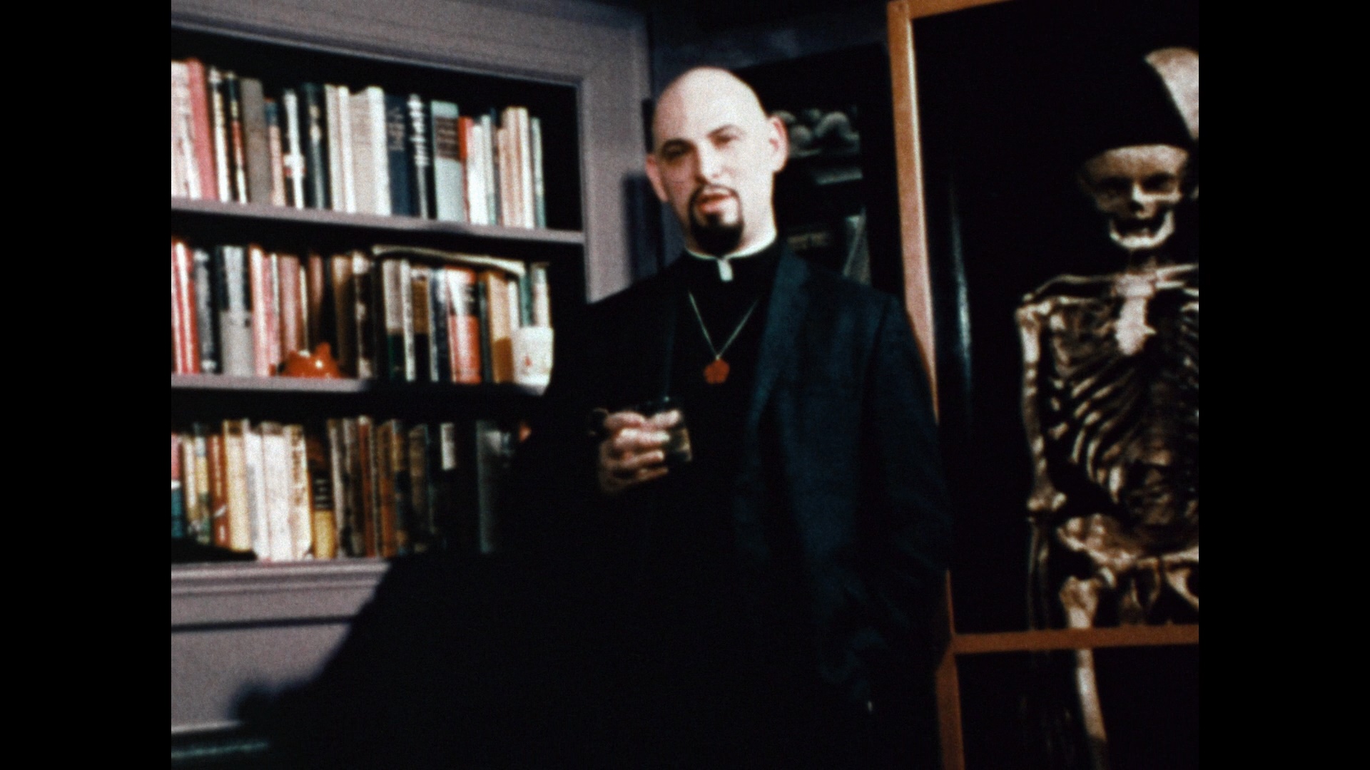 Hailing from the tumultuous year of 1969, Satanis is a chatty documentary about the burgeoning Church of Satan in the San Francisco area spearheaded by the infamous Anton LaVey, who's seen expounding on the major tenets of his religion as an expression of human indulgence in all its non-violent forms. Other person on the street interviews from both sides of the aisle are also included, intercut with footage of various black masses and chats with multiple witches about their own proclivities. You also get some spooky nude writhing with a boa constrictor, a bizarre monologue about childhood gas passing, a reference to Thor and Loki that plays a little strangely now, and lots of footage of LaVey in a horned devil suit. Barely released in theaters by Sherpix (who also handled Lonesome Cowboys and Pink Narcissus, among others), Satanis first appeared on DVD in 2003 from Image Entertainment in its Something Weird line paired up with Sinthia the Devil's Doll, with extras including three "Satanic shorts" ("British Black Mass," "My Tale Is Hot," and "Sexual Ritual of the Occult"), "supernatural trailers" (The Devil's Hand, House of Exorcism, Mark of the Devil Part II, Meat Cleaver Massacre, and Witchcraft '70), and the usual gallery of sexploitaiton ads. The Blu-ray features a fresh HD scan of what appears to be the same 16mm print (maybe the only