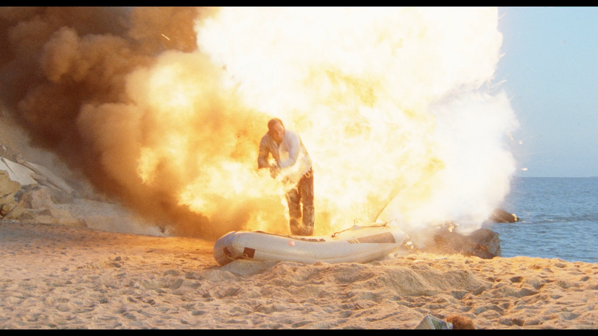 Largely unseen for decades, Savage Harbor makes a return to the public courtesy of a 2019 Blu-ray release as one of the first two titles in the Vinegar Syndrome Archive line, a 2,500-unit limited edition sold only through the company site and brick and mortar retailers. Featuring a sturdy case meant to mimic the feel of VHS packaging, the release comes hand numbered and also has an insert poster in addition to a reversible sleeve. Incredibly, the film has been outfitted with a sparkling new 2K transfer from the original negative, and it looks great. The opening titles have some unavoidable optical dirt but otherwise it's smooth sailing with rich colors and a far slicker appearance than the old VHS could have ever indicated, and the DTS-HD MA English 2.0 track features a surprisingly aggressive stereo mix that sounds terrific in a home theater.