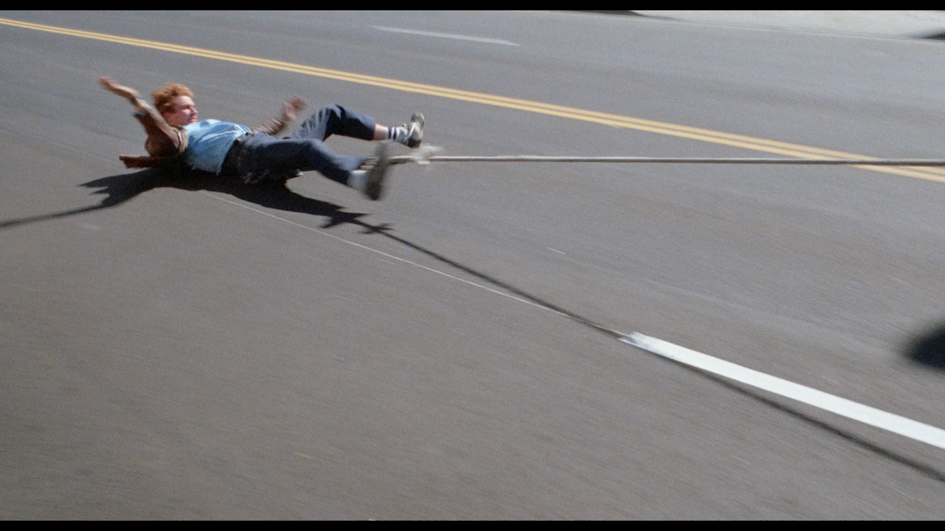 guaranteed to bring down the house) and a wild chase scene featuring a guy dragged at high speed down the street with his rope around his feet. It's a harrowing stunt that will have you reaching for the rewind button for sure. The sleaze value is high as well with Monson's usual fixation on cleavage and