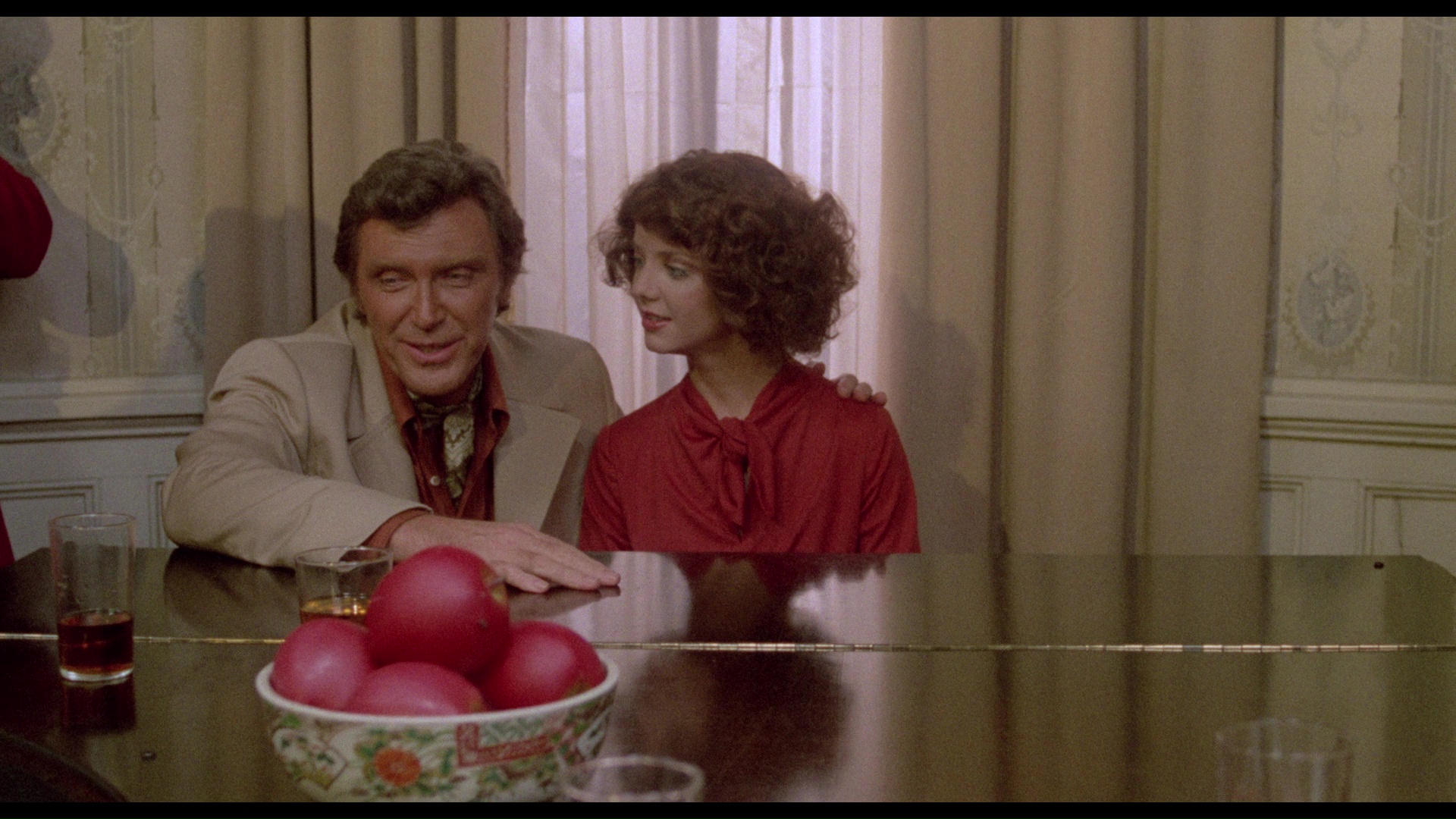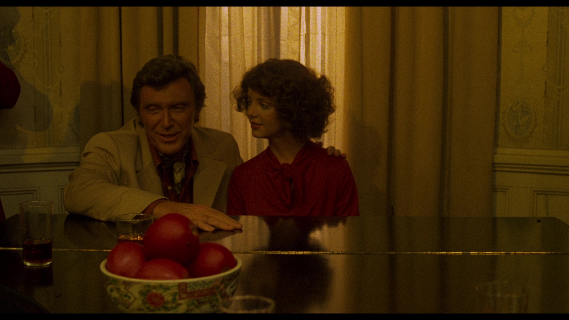Try both and see which one you prefer, but the gold wash (which is so extreme it rivals Lars Von Trier's The Element of Crime) tends to wear on your eyes after about half an hour and can be tough going. There's also an option to toggle back and forth between the two transfers, which reveals how radically different the viewing experiences are. The LPCM English mono audio (with optional