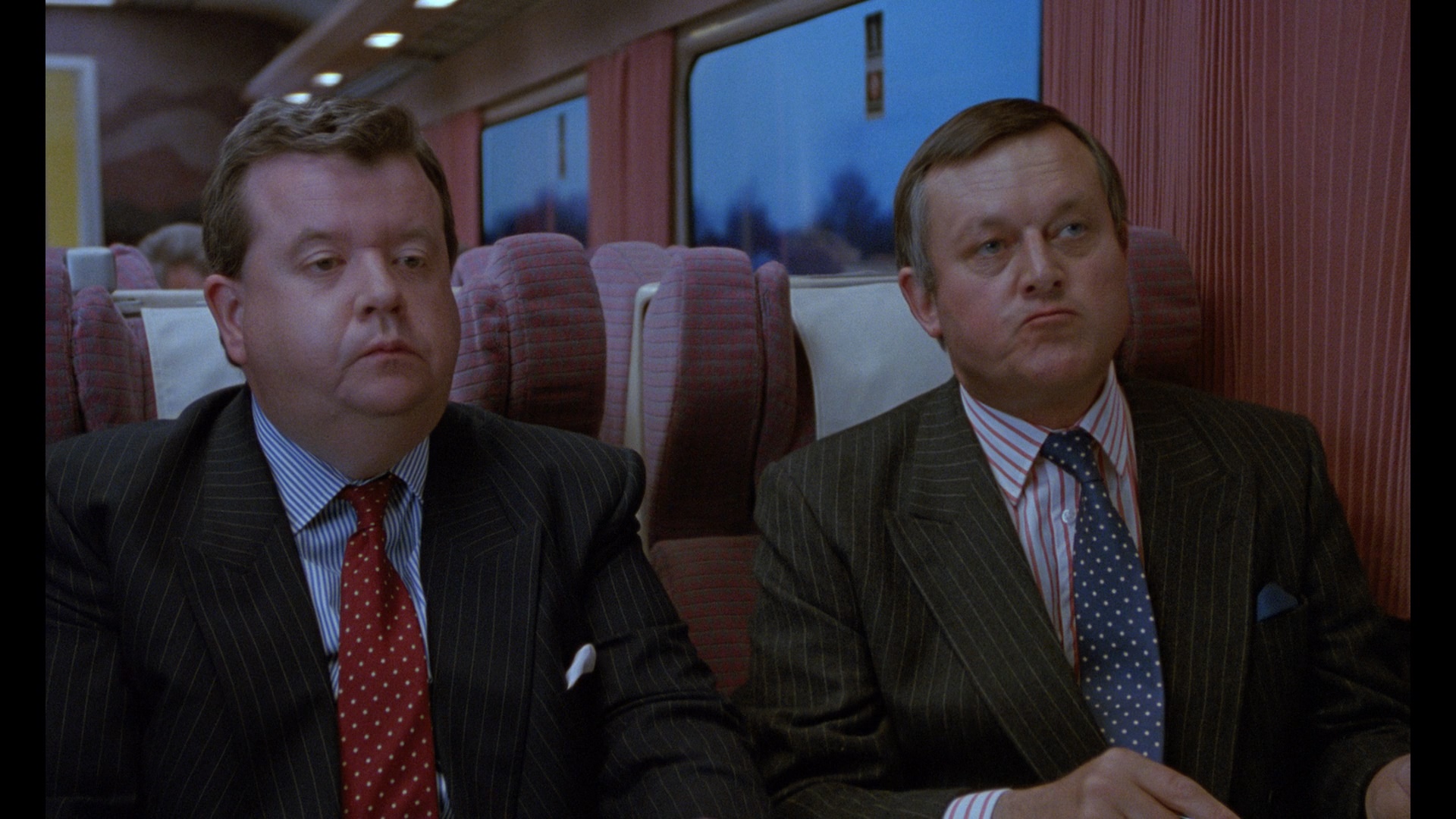 Unseen on home video since its VHS days in the U.K., Secret Friends came to Blu-ray in 2020 from Indicator as a region-free release with an excellent new HD transfer that likely looks better than this did during its extremely fleeting theatrical run. The LPCM English 2.0 track is a surprisingly expansive stereo mix at times with some nice separation in particular for the music score (which never seems to shut up) and the train sound effects, and optional English SDH subtitles are provided. In "Bon Vivant" (5m35s), actor