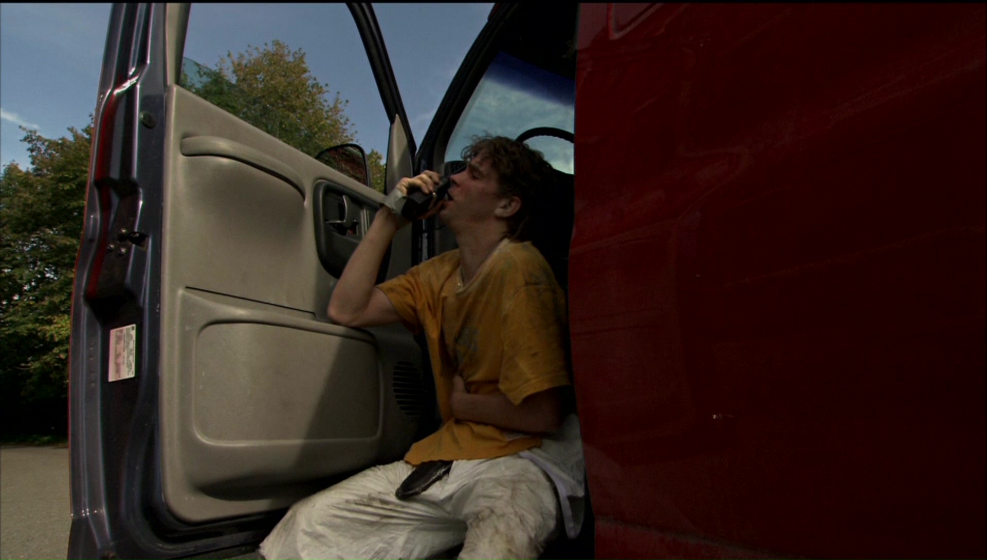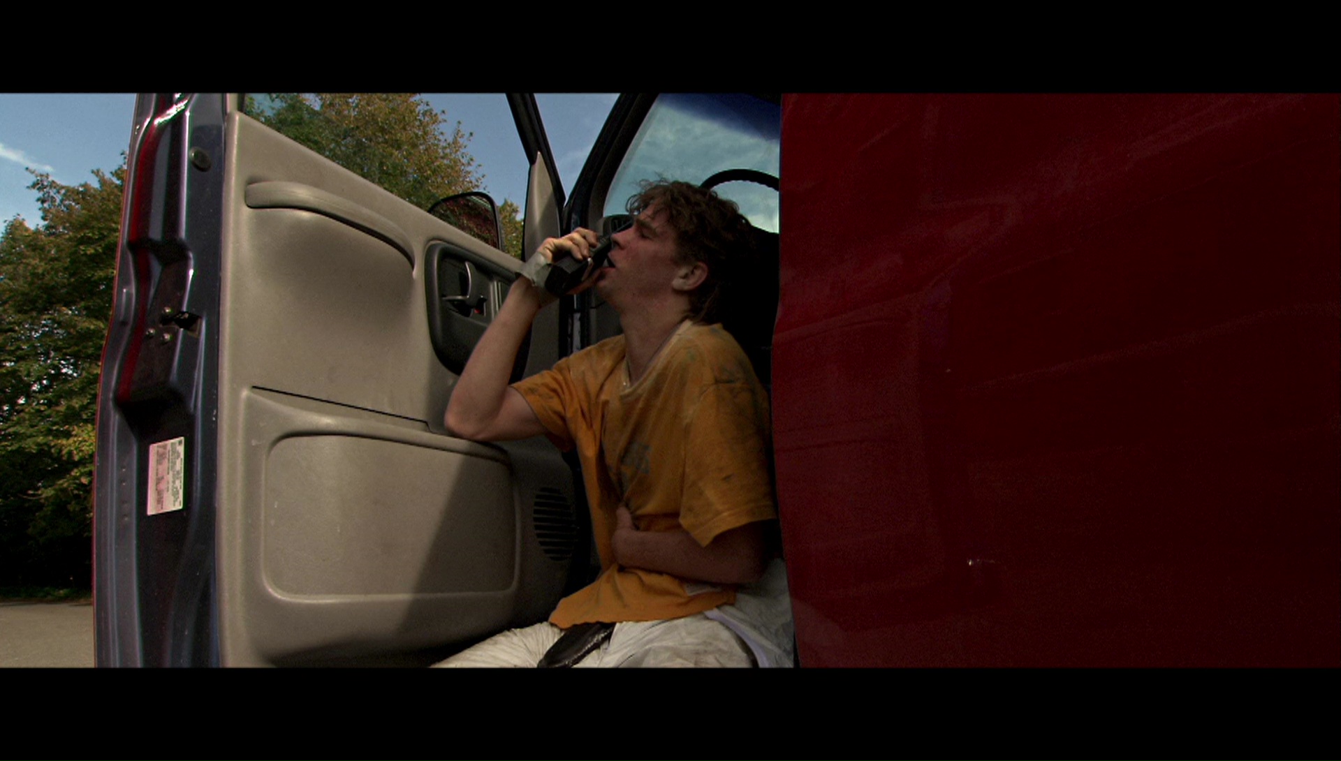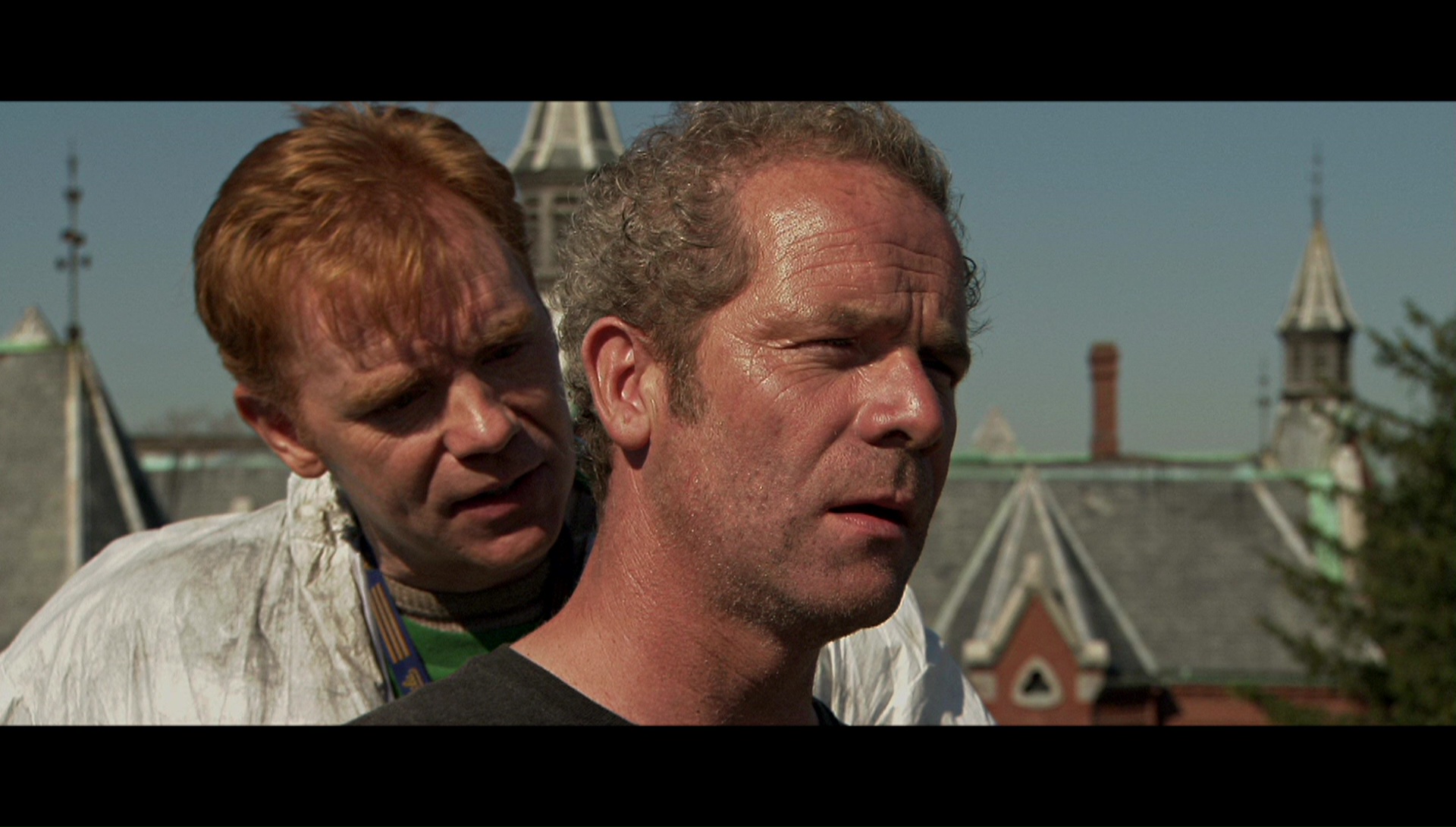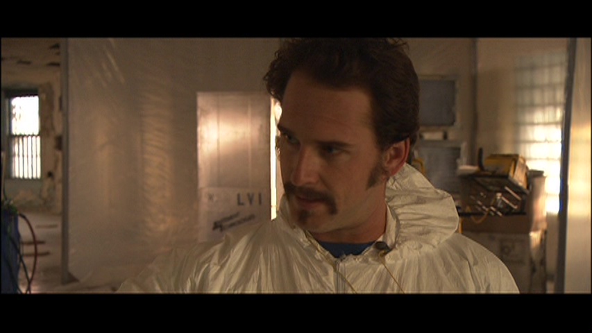 Now that brings us to the look of the film, which is a bit tricky. Several indies around this period were shooting on video in MiniDV, most notably the previous year's Tadpole (which looked like garbage on the big screen, to put it mildly). Plans to shoot this film the same way were abandoned when it became clear something better was needed to capture the depth of field and detail levels required by the location, so the decision was made to shoot it in HD video with a Sony CineAlta HDW-F900. The 24fps process looked a little odd when it was converted to 35mm film for theatrical release, and it still takes some adjustment at first during daylight scenes since the frame rate seems ever so slightly higher than normal. The results are certainly clear and deep enough to give the film a unique feel, and it's certainly more impressive than the erratic clash of video and film found in the following year's 28 Days Later. However, it didn't look so hot on the DVD, which was adequate for the time but plagued by rampant aliasing and overbrightening that flattened out many of the moodier scenes. Interestingly, in 2015 a new HD transfer bowed on HBO and Cinemax with 1.78:1 framing that turned out to be completely open matte, exposing huge areas of additional information on the top and bottom as it was originally shot in-camera. That may not be how it was intended to be composed for theatrical exhibition (where it was 2.35:1 and has remained in every home video incarnation), but it's a fascinating alternate presentation that drives home the film's visual nods to The Shining far more clearly. (You can see sample frame grabs from both options below compared to the Blu-ray frame grabs in the body of this review.) The Blu-ray features the most accurate and impressive presentation of the film to date, with the strongest and most accurate color palette, the original 2.35:1 framing, and as much detail as you can pull from the original format. Fans should definitely be pleased, and the DTS-HD MA 2.0 stereo track (with optional English subtitles) is a chilling, often intense experience from start to finish. Highly recommended.
