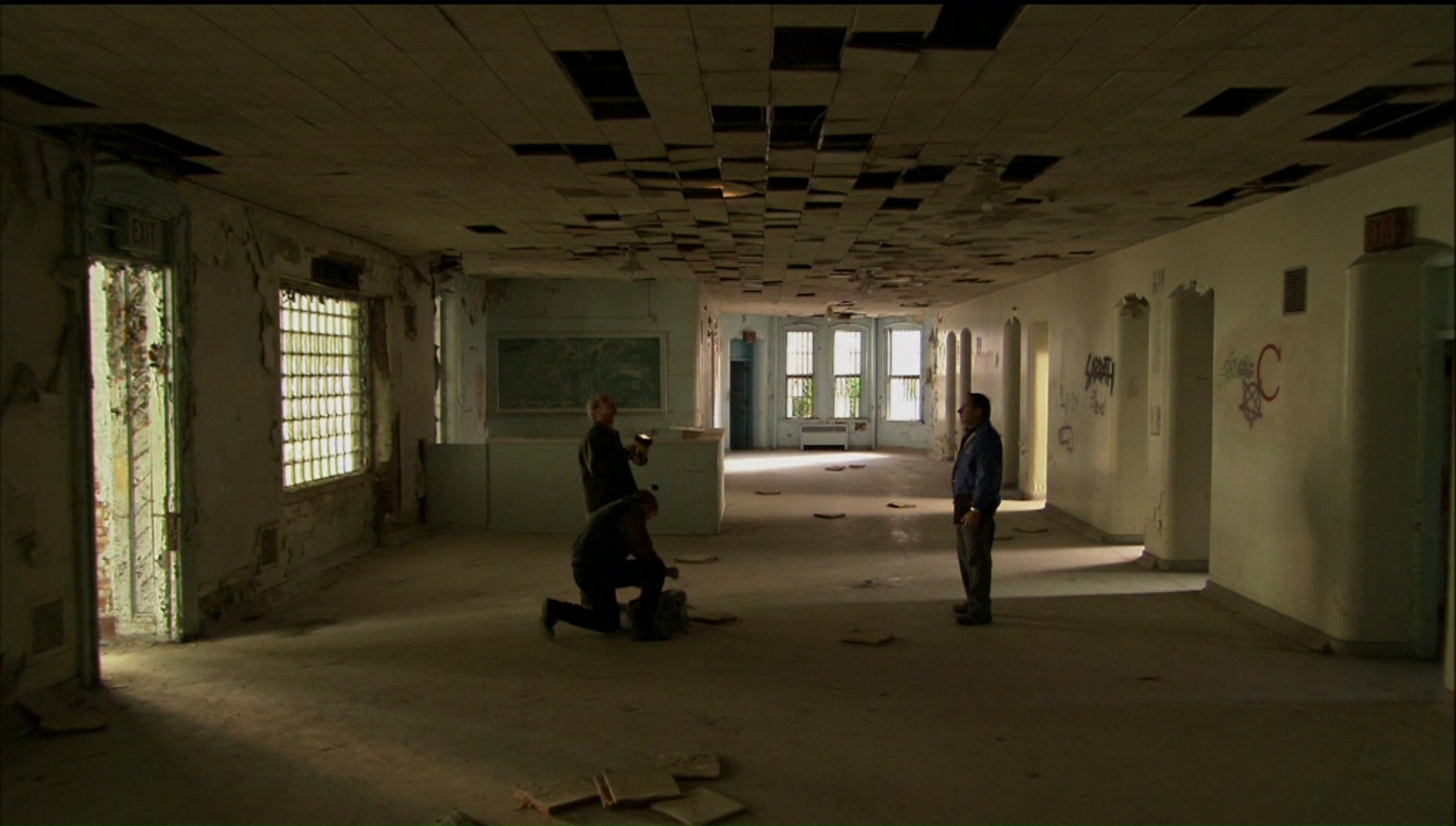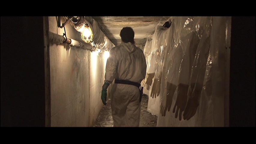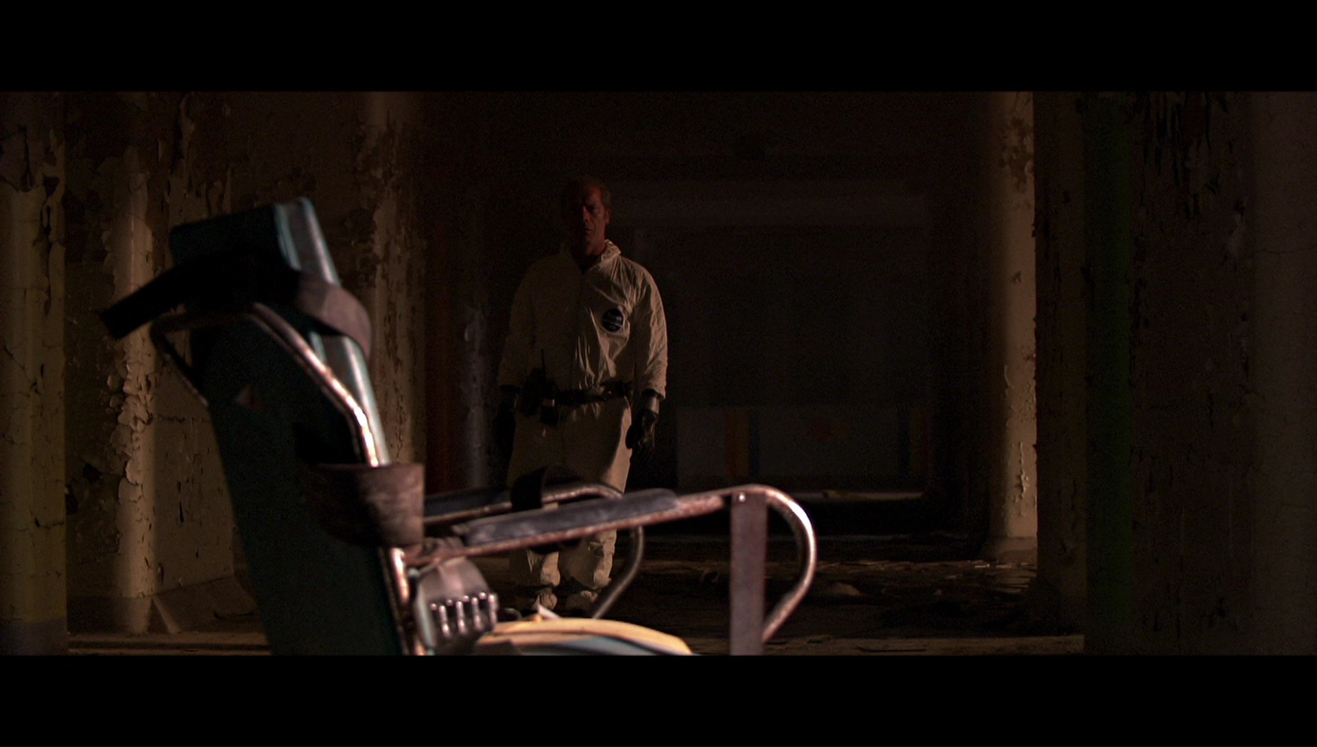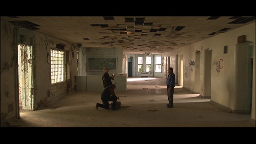 Obviously this was a prime candidate for a Blu-ray upgrade, and in 2016 fans got their wish with a release from Scream Factory. All of the extras from the DVD have been ported over (though the story-to-screen segment drops the commentary, which isn't a major loss as it's mostly redundant). You also get a pair of substantial new goodies as well. The new 49-minute featurette "Return to Danvers: The Secrets of Session 9" is actually the best of all the extras, an engrossing look back at the making of the film with Anderson, Gevedon, Lucas, Sexton, cinematographer Ute Briesewitz, composers Climax Golden Twins, and Larry Fessenden recalling how disturbing the location was and how much the production process got under their skin thanks to all the psychic trauma still lingering in the air. They cover everything from the decision to shoot in HD video, the creation of the intense soundscape, the presence of real asbestos in the building (which is why it's shown being wetted down on camera), and in the best moment, offer three different perspectives on a scary incident involving a dental drill. Also new is a 20-minute episode of "Horror's Hallowed Grounds" combining some 2003 home video footage of the building, pointing out specific rooms shown in the film, with present day coverage of the unlikely luxury apartments into which it has been transformed.