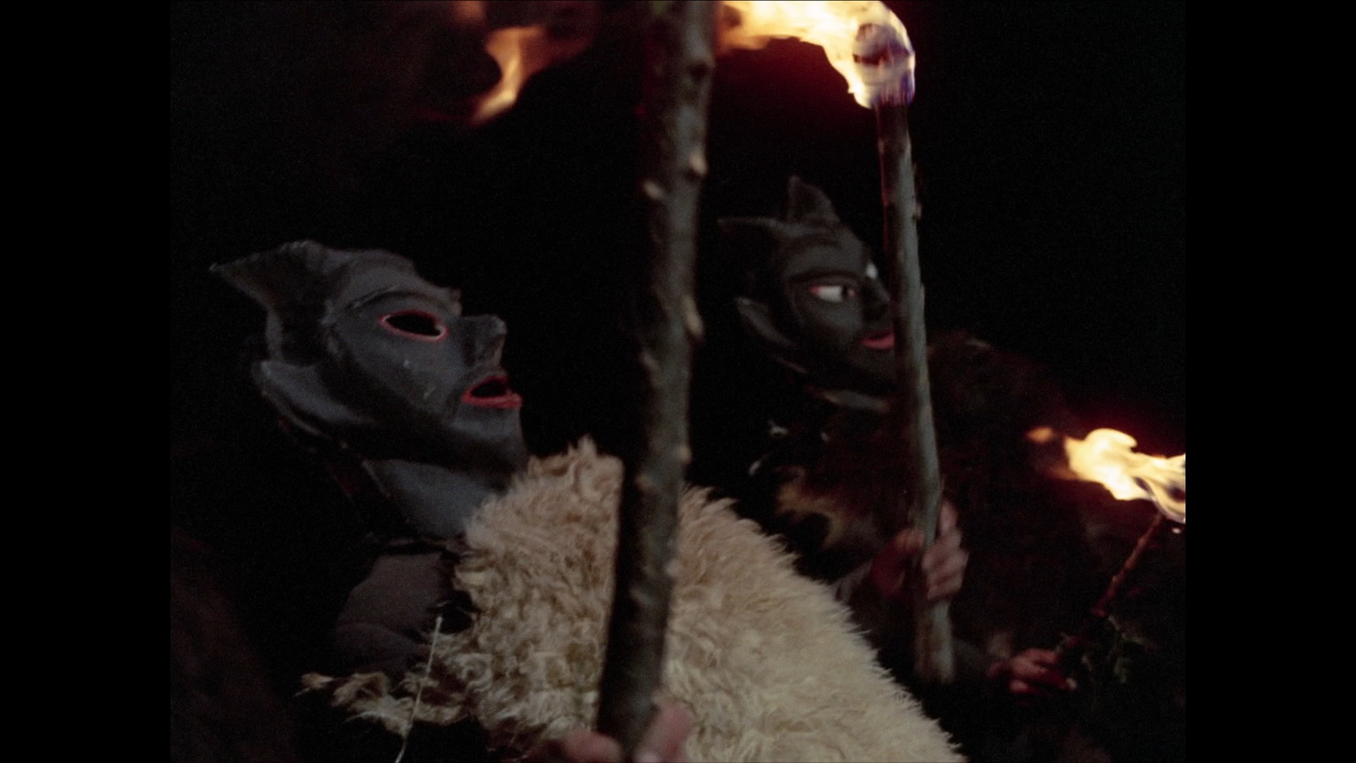 being thwarted, Lena drops a suicide note in the mail anyway, the latest in a succession of behaviors that have alarmed her frequently absent businessman husband, Dimitris (Farmakis). Apparently her affairs and self-destructive behavior came to light six months into their marriage, and now he's consulting a psychiatrist (Mistakis) to help untangle her horny and tormented psyche. From there we plunge into dizzying flashbacks showing her childhood in the countryside, her parental issues, and various traumatic incidents that linger with her today, sometimes with a significant disconnect between what we're seeing and hearing. That includes a hot-blooded mother, lesbian experimentation, incredibly garish furniture, and odd village customs including a creepy, masked nocturnal ritual straight out of a horror movie.
