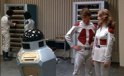 It's the "tomorrow after tomorrow" and the "great robot wars" have left Earth coated with radioactive fallout. Mankind has been forced to colonize the Moon but unfortunately all is not well in outer space, either. It seems the maniacal Omus (a typically off-his-rocker Jack Palance) has sent an intergalactic kamikaze automaton