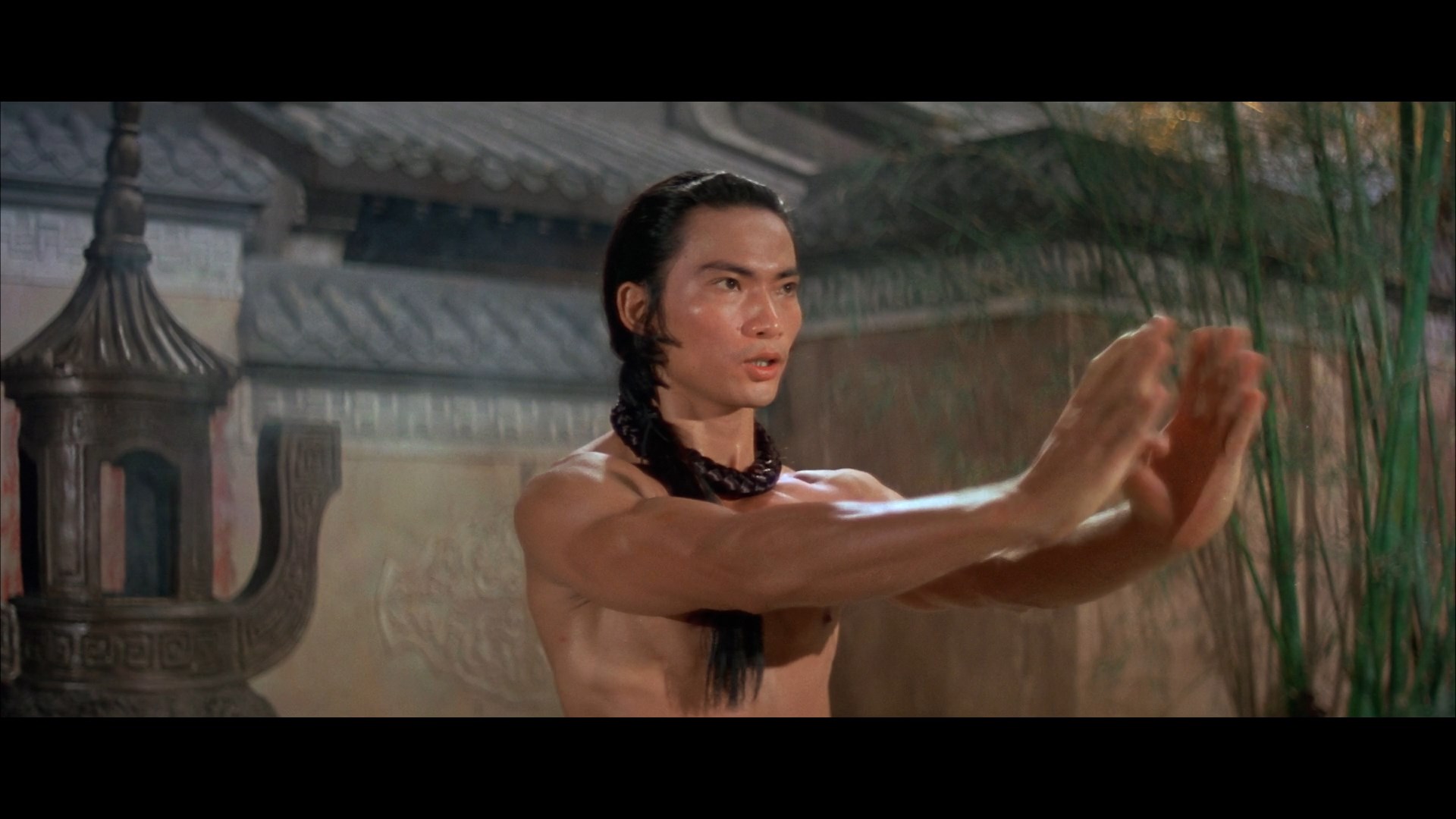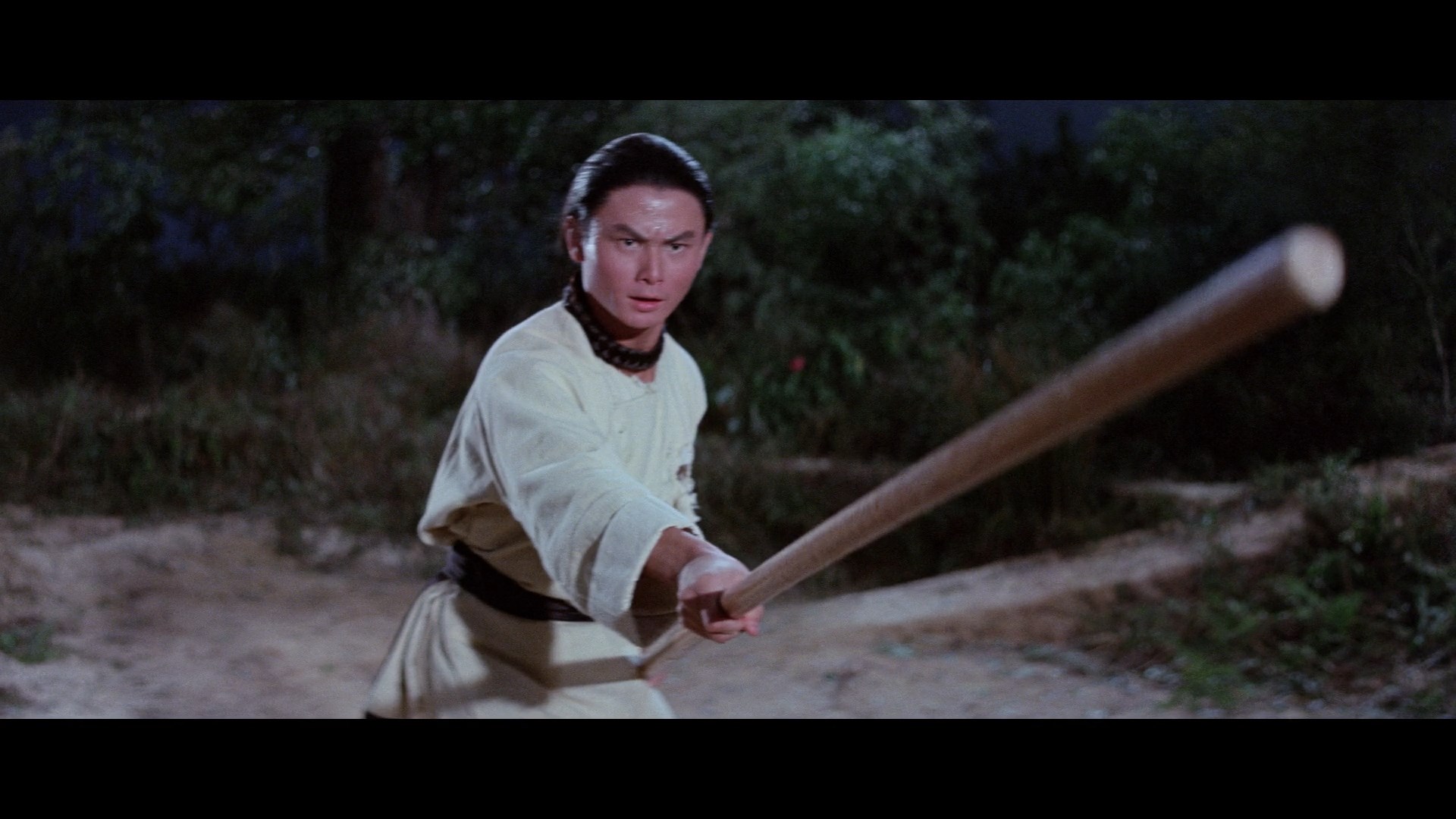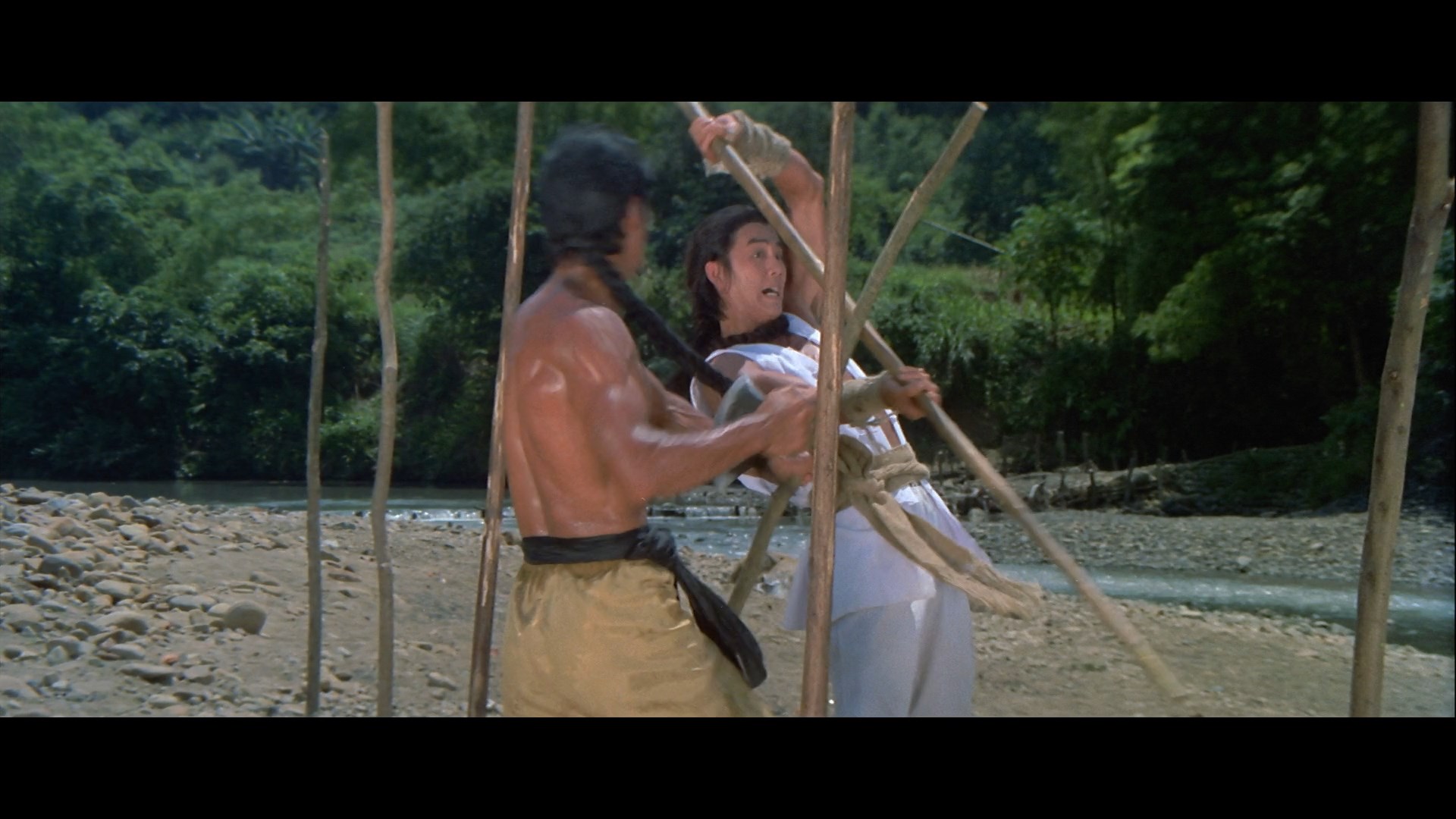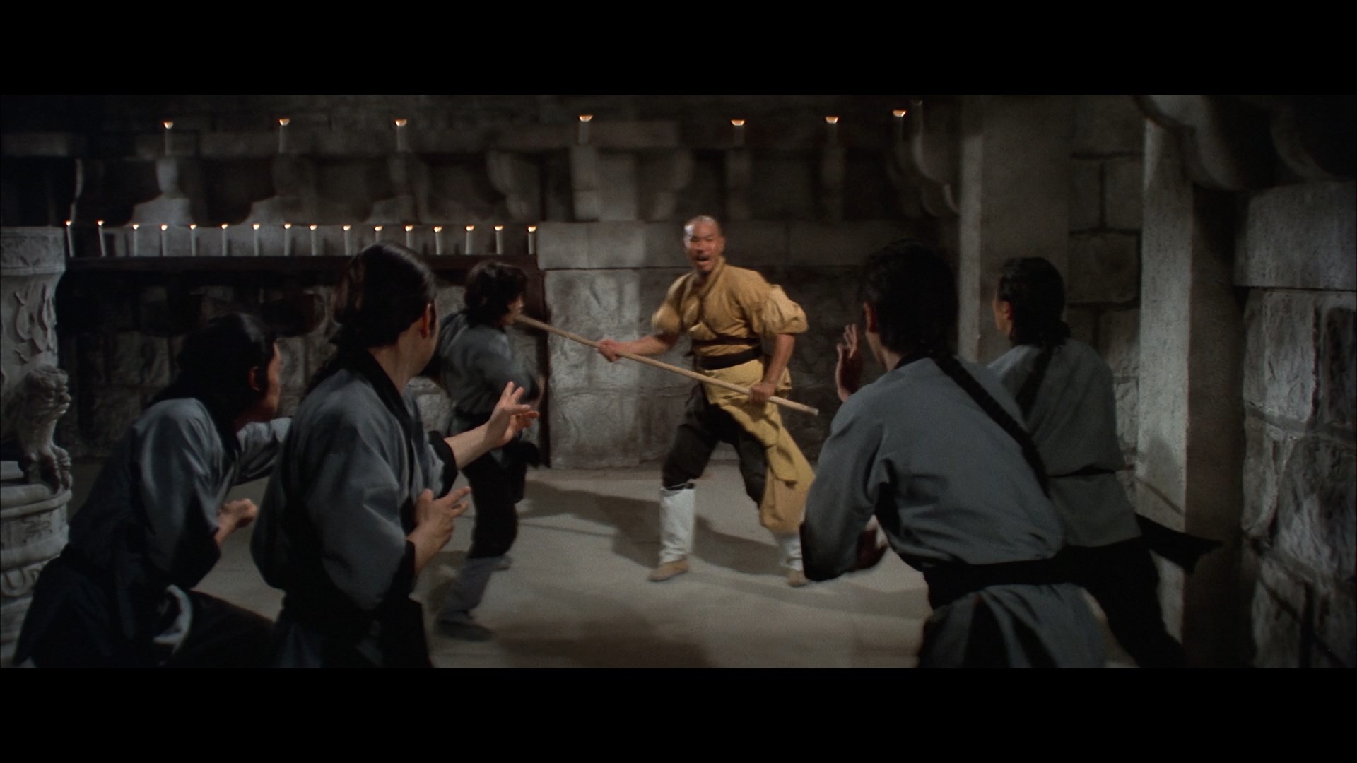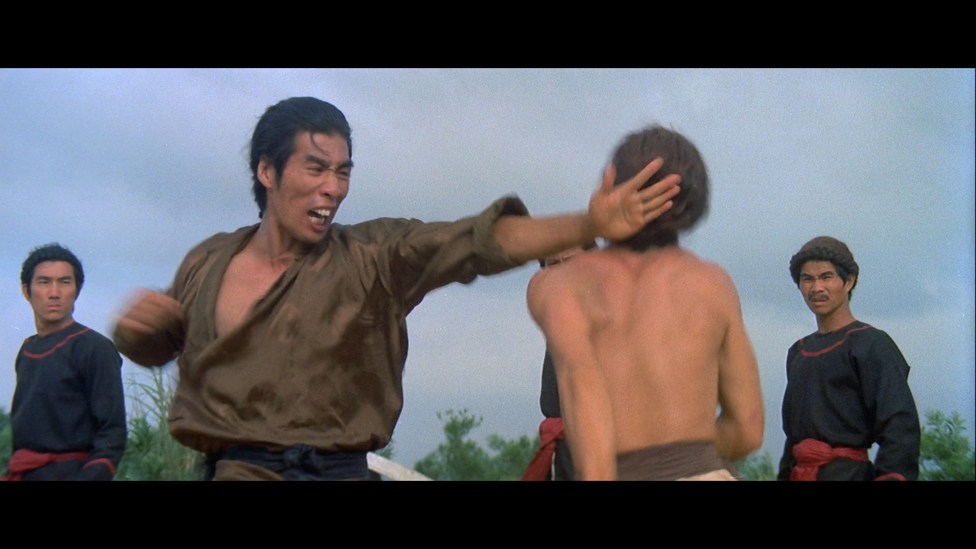 The first legit U.S. release of this film was a DVD from The Weinstein Company's Dragon Dynasty line, featuring the Mandarin and English tracks, taken from Celestial's PAL master without any time adjustment (so it runs short and at a higher pitch at 101m36s). The main reason to hang on to that one is an exclusive commentary by David Chute, Elvis Mitchell, and Quentin Tarantino, which covers the film's impact within the kung fu movie craze and the major players involved. That disc also includes interviews with director Chung Chang-wha (or Chang-hwa Jeong) (5m12s), action director Lau Kar Wing (19m25s), and David Chute and Andy Klein (6m52s). The Arrow disc sports a greatly improved new 2K restoration (made from a 4K scan of the negative) that runs at the correct speed and looks gorgeous throughout; the Mandarin and English audio options are provided in DTS-HD 1.0 mono with optional newly English translated or English SDH (for the dub) subtitles, a configuration present on all of the other titles as well. Here you get a new audio commentary by David Desser (co-editor of The Journal of Japanese and Korean Cinema and The Cinema of Hong Kong), who presents a thorough history of the film, its timing in the Shaw Brothers canon, the cast, and the techniques seen in the film. A new video appreciation by film critic and historian Tony Rayns (42m56s), sketches out the history of Shaw Brothers from the 1920s and traces it to the heyday of the martial arts era, including the return of Bruce Lee to Hong Kong and the ascension of Golden Harvest. One major score in this set is a batch of interviews conducted by Frédéric Ambroisine from 2003 to 2007, and here that includes ones with Chung Chang-wha (39m54s) and star Wang Ping (25m51s) including a ton of history about the studio. Also included is an interview with Cho Young-jung (33m24s), author of Chung Chang-wha: Man of Action, who provides an extensive overview of the director's career. Originally commissioned by Celestial back in 2003 and seen on some of its martial arts releases is Cinema Hong Kong: Kung Fu (49m36s), the first in a three-part documentary on Shaw Brothers’ place within the martial arts genre with interviews by the likes of Jackie Chan, Jet Li, John Woo, Sammo Hung, Gordon Liu, Lau Kar-leung, Cheng Pei-pei, and David Chiang. Also included are the American American Warner Bros. main titles as Five Fingers of Death, two Hong Kong trailers, two German trailers, a U.S. trailer, a TV spot, and radio spot, plus a digital reissue trailer created by Celestial. (To avoid repetition, all of
