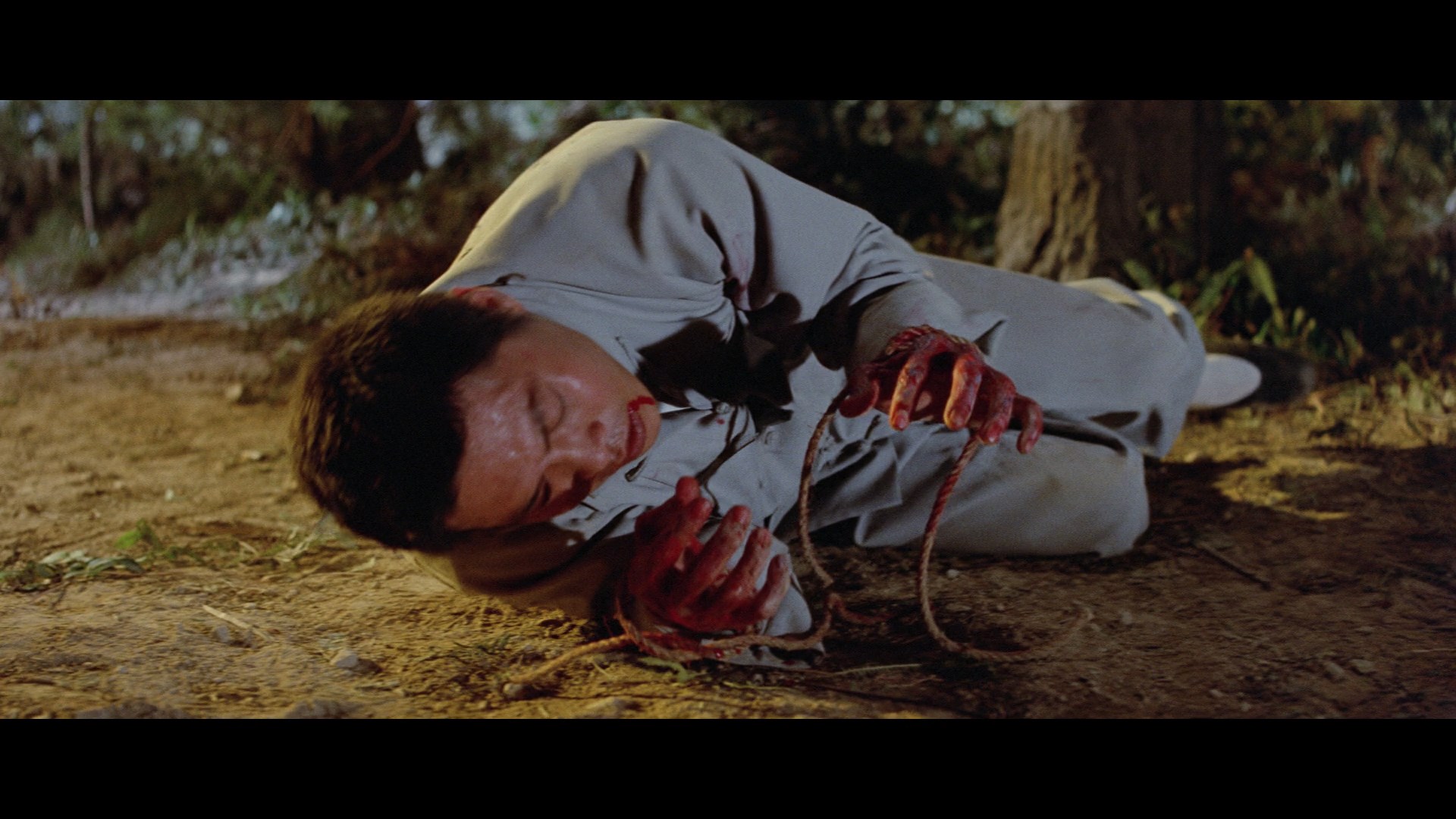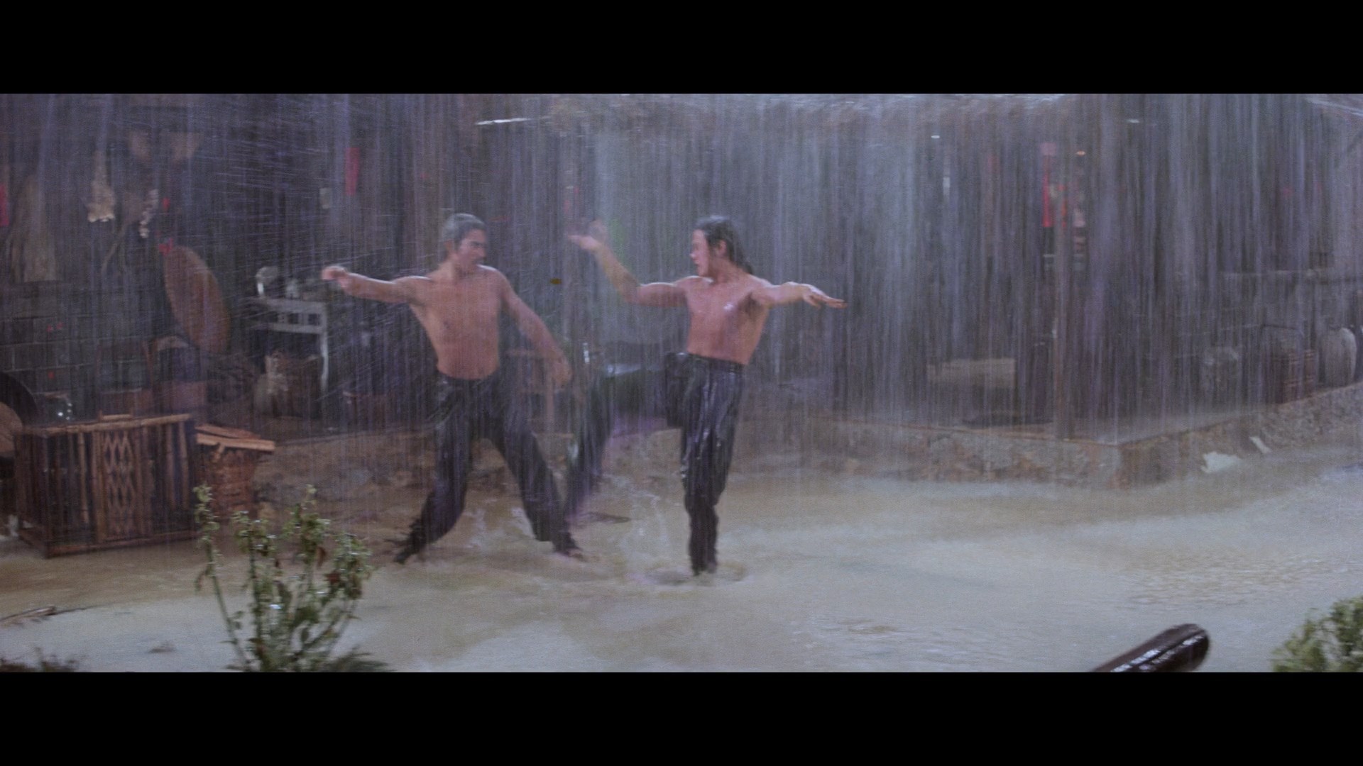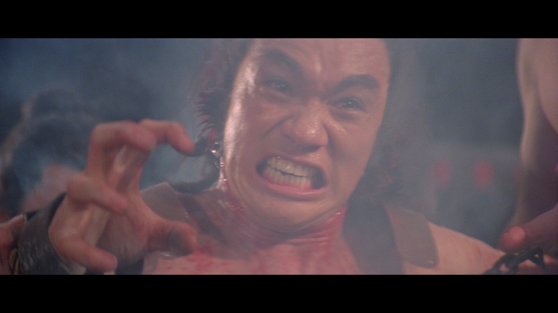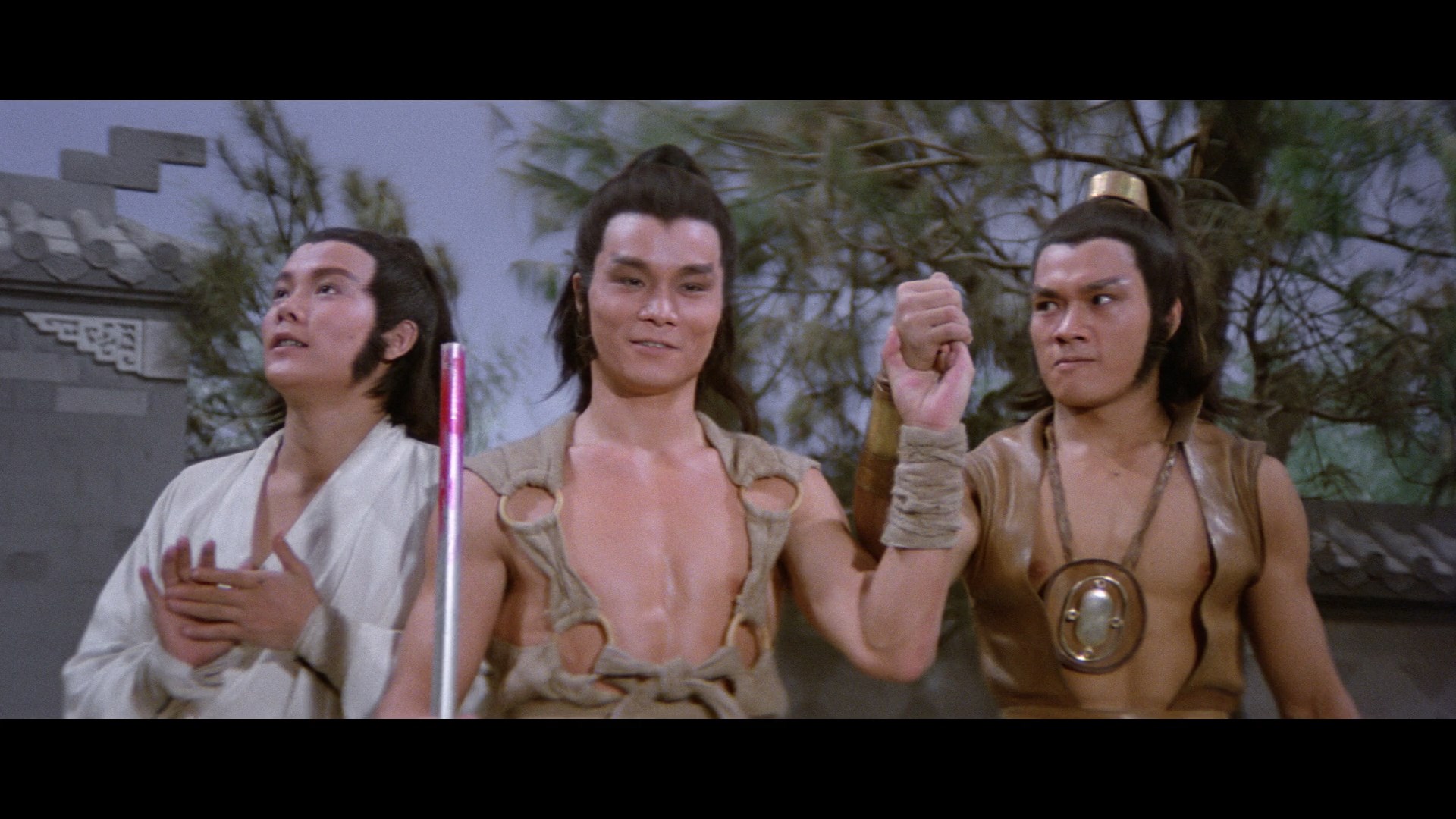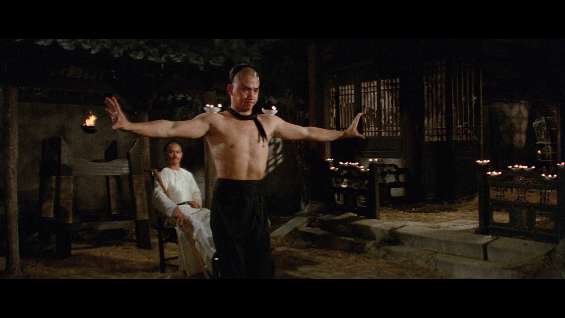 The first legit U.S. release of this film was a DVD from The Weinstein Company's Dragon Dynasty line, featuring the Mandarin and English tracks, taken from Celestial's PAL master without any time adjustment (so it runs short and at a higher pitch at 101m36s). The main reason to hang on to that one is an exclusive commentary by David Chute, Elvis Mitchell, and Quentin Tarantino, which covers the film's impact within the kung fu movie craze and the major players involved. That disc also includes interviews with director Chung Chang-wha (or Chang-hwa Jeong) (5m12s), action director Lau Kar Wing (19m25s), and David Chute and Andy Klein (6m52s). The Arrow disc sports a greatly improved new 2K restoration (made from a 4K scan of the negative) that runs at the correct speed and looks gorgeous throughout; the Mandarin and English audio options are provided in DTS-HD 1.0 mono with optional newly English translated or English SDH (for the dub) subtitles, a configuration present on all of the other titles as well. Here you get a new audio commentary by David Desser (co-editor of The Journal of Japanese and Korean Cinema and The Cinema of Hong Kong), who presents a thorough history of the film, its timing in the Shaw Brothers canon, the cast, and the techniques seen in the film. A new video appreciation by film critic and historian Tony Rayns (42m56s), sketches out the history of Shaw Brothers from the 1920s and traces it to the heyday of the martial arts era, including the return of Bruce Lee to Hong Kong and the ascension of Golden Harvest. One major score in this set is a batch of interviews conducted by Frédéric Ambroisine from 2003 to 2007, and here that includes ones with Chung Chang-wha (39m54s) and star Wang Ping (25m51s) including a ton of history about the studio. Also included is an interview with Cho Young-jung (33m24s), author of Chung Chang-wha: Man of Action, who provides an extensive overview of the director's career. Originally commissioned by Celestial back in 2003 and seen on some of its martial arts releases is Cinema Hong Kong: Kung Fu (49m36s), the first in a three-part documentary on Shaw Brothers’ place within the martial arts genre with interviews by the likes of Jackie Chan, Jet Li, John Woo, Sammo Hung, Gordon Liu, Lau Kar-leung, Cheng Pei-pei, and David Chiang. Also included are the American American Warner Bros. main titles as Five Fingers of Death, two Hong Kong trailers, two German trailers, a U.S. trailer, a TV spot, and radio spot, plus a digital reissue trailer created by Celestial. (To avoid repetition, all of