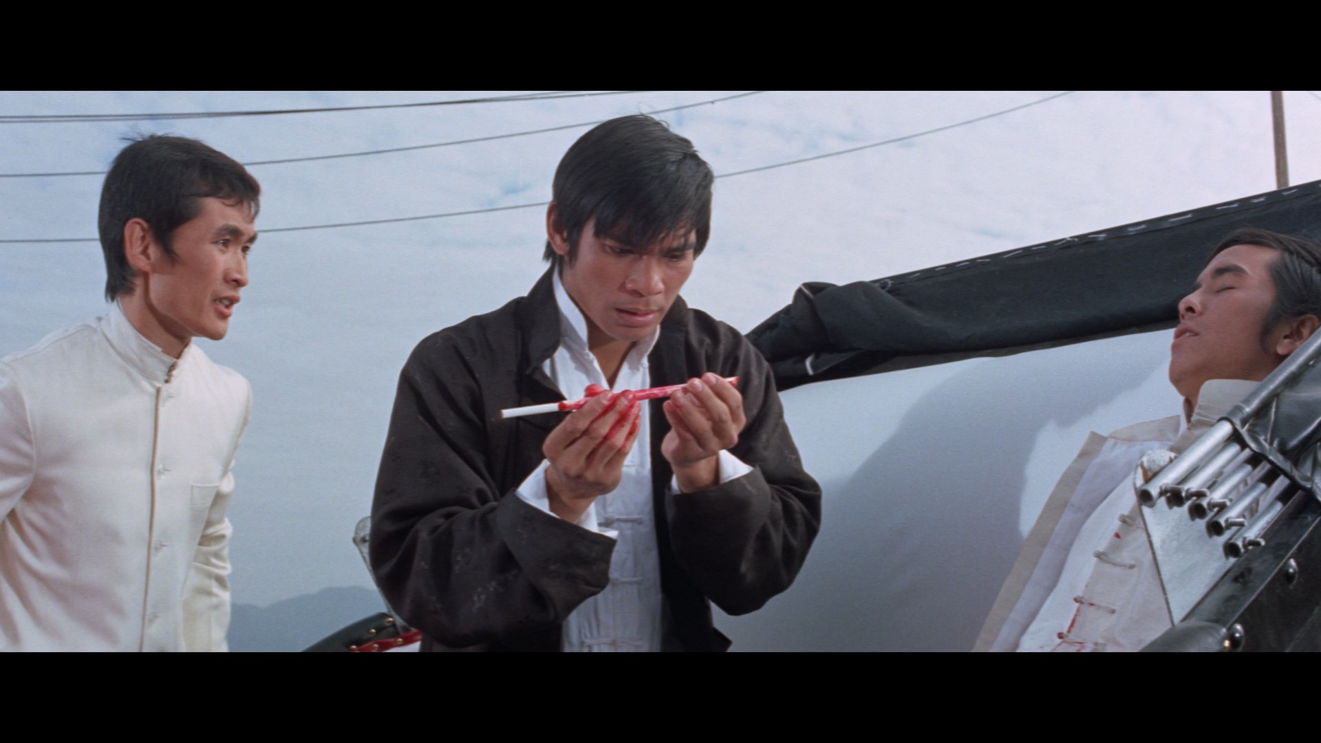 both versions, with the 115-minute one finally in full scope with a fresh 2K scan. It's cited as being "from original film elements," and though it isn't as pristine as the 90-minute one (you'll see some minor film damage and some flickering here and there), it's great to finally have that version back in circulation again looking the best it ever has. The long cut also has an audio commentary by Terrence J. Brady, author of Alexander Fu Sheng: Biography of the Chinatown Kid, and he obviously knows his stuff with a fantastic track loaded with info about the making of the film and its star's remarkable career (cut off far too young by his premature death at the age of 28) as well as the differences between the two cuts. The 114-minute cut comes with Cantonese and English audio options, while the 90-minute one is obviously Mandarin (with the usual respective English subtitle options). Co-star Susan Shaw also offers a new select scene video commentary (23m43s) recalling her time at Shaw Brothers and her experiences on the film, followed by another vintage Elegant Trails, this time focusing on Alexander Fu Sheng (7m21s). Also included are