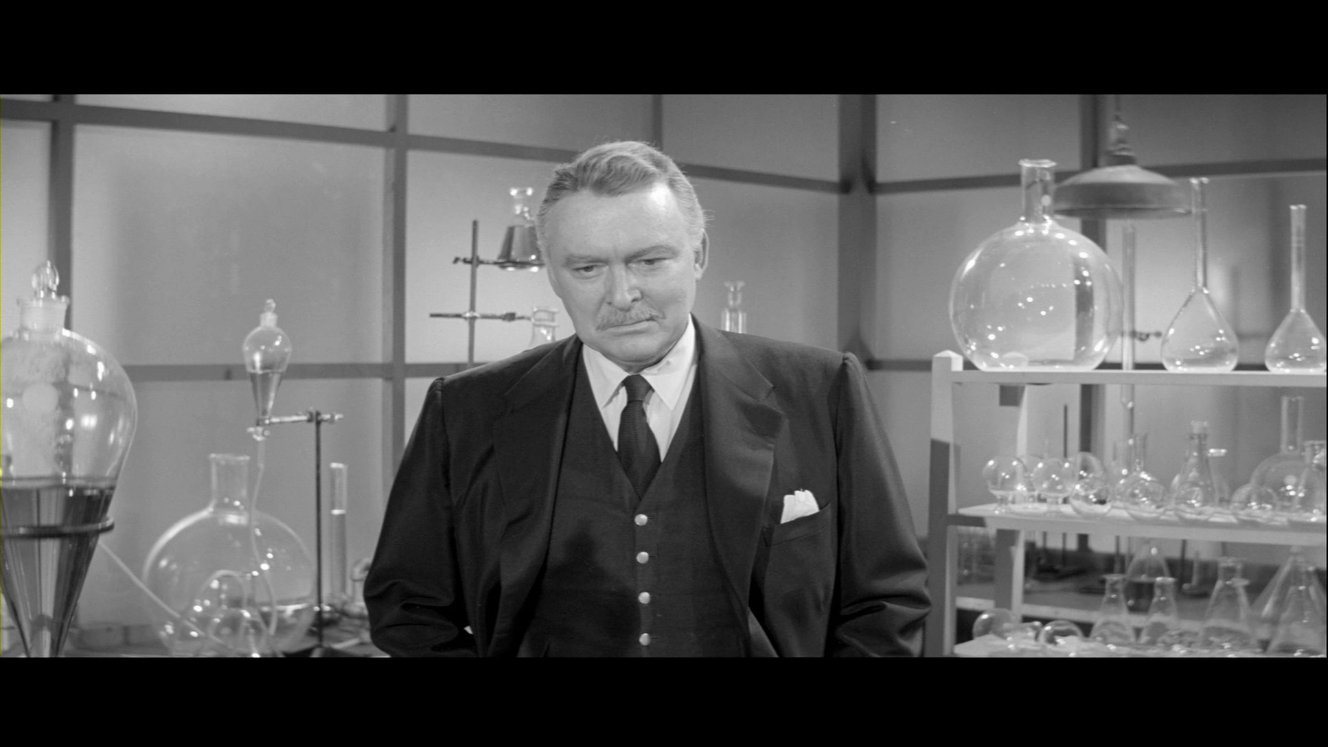 Released theatrically by Fox and then essentially orphaned, She Devil seemed to elude the home video gods for decades despite its occasional after hours appearances on TV into the 1980s. The 2013 Blu-Ray and DVD editions from Olive Films will be a completely new experience for many viewers. The HD transfer looks very good from what appears to be film elements kept in pretty solid shape; you'll see a little fleeting debris and damage here, but nothing major. The contrast levels look very solid throughout (though of course some of Blanchard's close ups tend to brighten up artificially, an apparent cinematographer judgment call), and it has a similar look to other scope B&W sci-fi outings like, say, Hand of Death or The Alligator People (which would be a great Blu-Ray double feature someday!). The DTS-HD mono audio also sounds robust enough considering it's about 90% dialogue. If you're a fan of '50s sci-fi monster films, or film noir for that matter, this modest treat will be quite a kick as it twists the femme fatale formula in quite a few interesting directions.