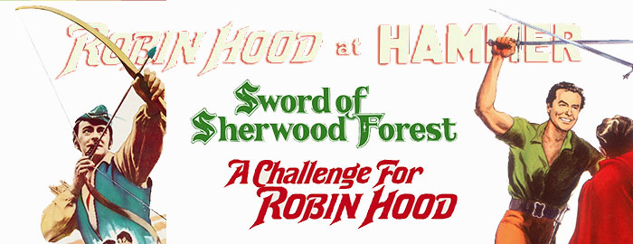 going full steam ahead in other genres. Adventure films were a particular mainstay, and in 1960 the studio made the interesting decision to mount Sword of Sherwood Forest starring Richard Greene, who had just been playing Robin Hood on British TV since 1955 in the series The Adventures of Robin Hood. Otherwise Hammer stacked this one with a new cast, shot it in the proprietary MegaScope process (which retained the obvious stretching effect from early CinemaScope), and retained one of its most accomplished directors, Terence Fisher (who had done a handful of the TV episodes). However, the real ace up its sleeve was the casting of the legendary Peter Cushing as the Sheriff of Nottingham, enough to ensure this a place in fans' hearts. In 1967, Hammer revisited the material for the far lower-wattage A Challenge for Robin Hood, which plays like kind of a prequel and compensates with plenty of action and lush scenery. Both films have been gathered on U.K. Blu-ray from Indicator in a limited 5,000-unit set, Robin Hood at Hammer, another treat for Hammer fans showing off both of these films in their best presentations to date.