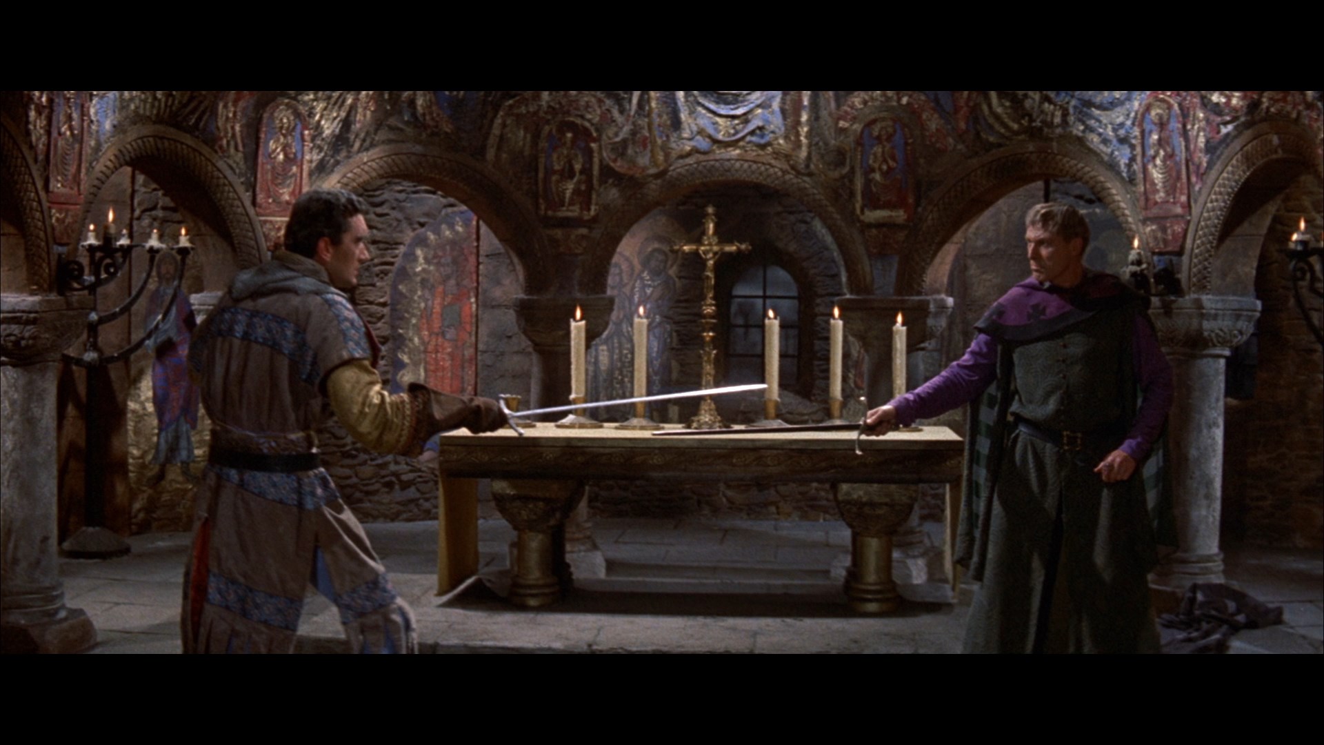 platinum blonde, early '60s Maid Marian skinnydipping in a forest lake when she first meets Robin and assumes he's a murderous gang leader. As you can probably guess from the title, the usual archery angle is downplayed here in favor of swordplay, likely influenced by the legendary finale of the 1938 Errol Flynn classic. A veteran actor since the '30s, Greene is fine in the role (as he'd already proven on TV) but doesn't really have the magnetism needed to play a big screen swashbuckler; after this his main highlights were playing Nayland Smith in Jess Franco's two Fu Manchu films and suffering a memorably nasty fate in the 1972 Amicus classic, Tales from the Crypt. Hammer fans will also get a kick out of a quick early appearance by Oliver Reed, who would headline several classic films for them in the near future.