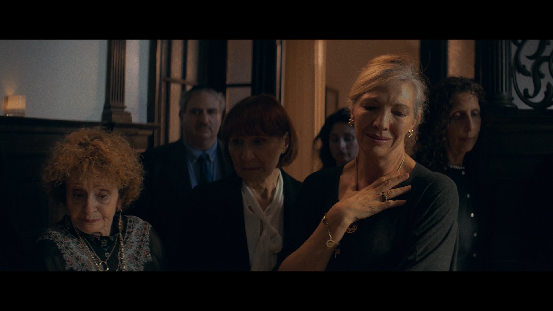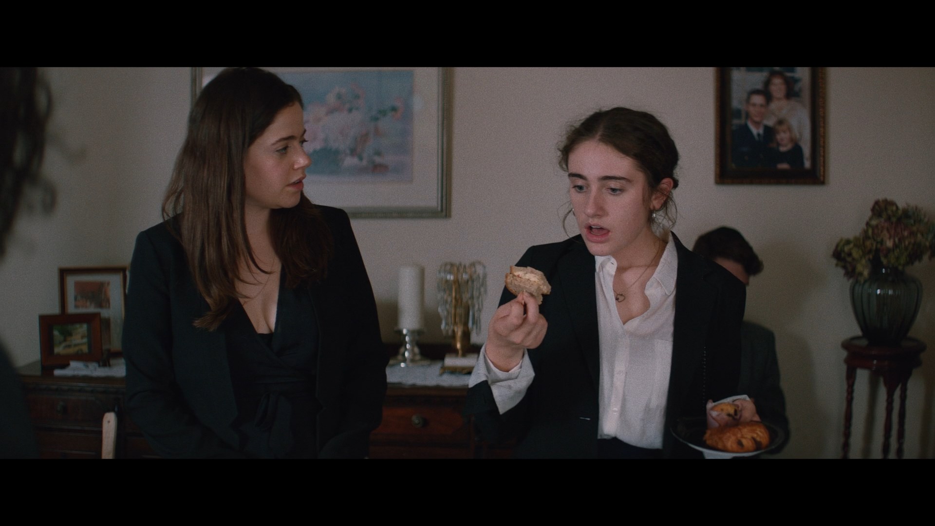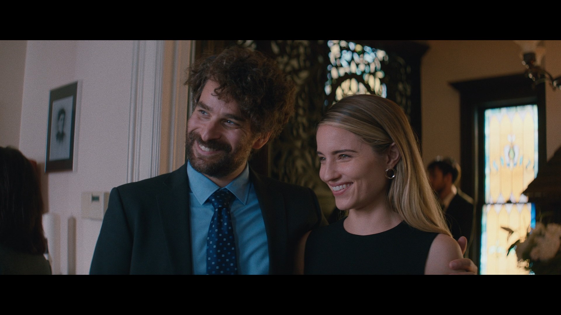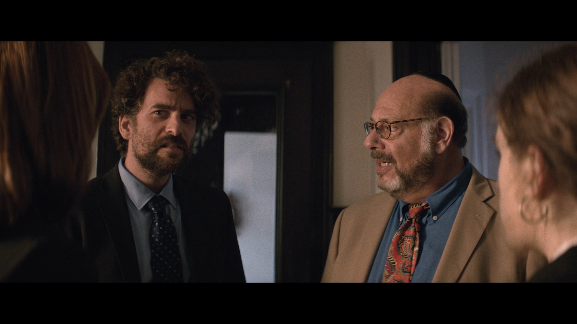 Handled worldwide by Utopia with physical media distribution by Vinegar Syndrome sister company OCN Distribution, Shiva Babycomes to Blu-ray (including a limited slipcase edition with a double-sided poster) looking as immaculate as you'd expect for a 2020 title without any issues to report whatsoever; it looks great throughout. The DTS-HD MA English 5.1 track (with optional English SDH subtitles) is also excellent with sparing but very effective use of the rear channels when those strings kick in. (Though solicited as a Region A title, the disc is actually region free.) An audio commentary with Seligman, Sennott, and maybe Gordon is chaotic since they have the movie volume up loud and just react without introducing themselves, but there are some good bits scattered around in here with stories from the shoot. Also included are the original standard and red-band trailers and a Q&A with Seligman and Sennott (36m) via Zoom about the Herb Alpert-inspired poster art, the creation of the short film, the mandate that finally got the film in front of the cameras, the Jewish-themed films and TV shows used for reference, and the elements of psychological horror that crept in along the way.