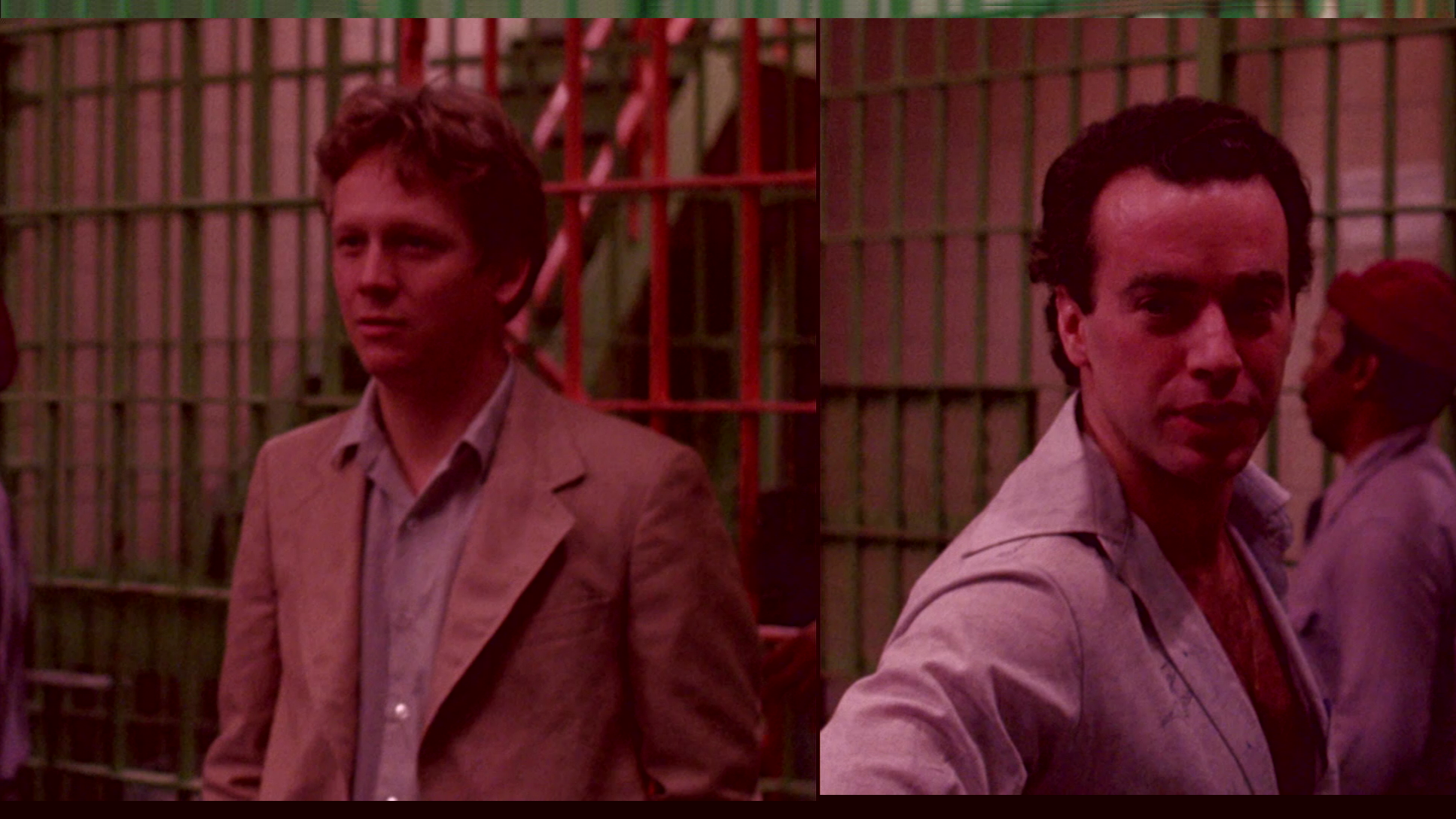 confides in the most, Juan (Miami Blues' Pérez), who is greatly disturbed by both the new arrival's potential for destruction on the outside and the equally violent possibilities against him within the concrete walls.