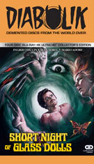 In 2025 depending on which side of the pond you're on, you get two virtually simultaneous new releases on 4K UHD along with Blu-rays in both the U.K. and the U.S., both from a gorgeous new restoration with HDR10-compatible Dolby Vision on the UHD along with the English and Italian mono tracks (DTS-HD MA 2.0) with English-translated or SDH subtitles. The U.K. one was a definite upgrade from 88 Films which adds on an audio commentary (with Eugenio Ercolani, Troy Howarth, and this writer), "When Butterflies Turned to Glass" with Lado, a "Glass Doll Theories" video essay by Pier Maria Bocchi, a "Lado’s Trilogy of Terror" video Essay by Mike Foster, an appraisal by Stephen Thrower, the archival Dell'Orso, "Czech Mate," and Geissler pieces, and "Cutting Glass Dolls" with editor Mario Morra. The massive four-disc(!) edition from Celluloid Dreams features one UHD and three Blu-rays, and direct orders also come with an original 10-frame filmstrip of 10 frames (newly printed from the trailer's original camera negative) and a set of 12x8.25" color reproductions of the original Italian fotobuste (lobby cards). Short Night of Glass DollsThe film itself looks better than ever, pulling back on the somewhat harsh white highlights of the earlier HD scan and featuring more consistent flesh tones and a moodier, more delicate, shadowy appearance. The French-language commentary with Lado and Caddeo is here with English subtitles and is always worth a listen (especially the early account of covert shooting in Prague), while Guido Henkel provides a new commentary that's easily up to par with his stellar Short Night of Glass Dollswork on the label's earlier Case of the Bloody Iris. His eye for detail is exceptional as he points out uncredited bit players, curious aspects of locations and behavior in the extras, possible readings of the visual symbols, and tons more. Both the UHD and first Blu-ray also have the Italian and English trailers, a "grindhouse" (i.e., scruffy-looking) version of the Italian trailer, and a very cool previously unseen English trailer under the title Catalepsis.
