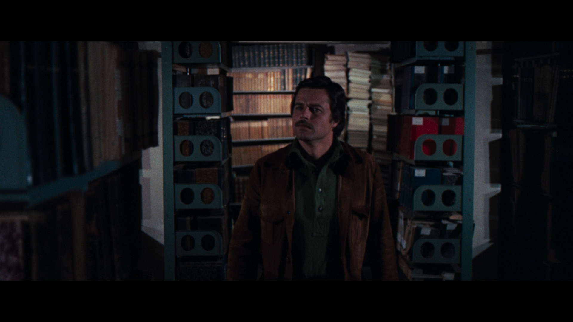 Disc three (or Blu-ray two if you prefer) is devoted to the bulk of the video bonus features kicking off with "The Nights of Malastrana" (101m8s), a revised version of the "Czech Mate" piece with Lado. The new "All About Lado" (32m32s) is a 2018 interview with the filmmaker covering his general career from his early cinematic inspirations to his other artistic pursuits, his extensive work in France, and his path to becoming a director in Italy. The Doria, Geissler, Morra, and Dell'Orso interviews are all included here (the Morra one called "Cuts Like a Knife" now), while the new video essay "The Man on the Bridge: Philosophy, Perception and Imprisonment in Aldo Lado's Short Night of Glass Dolls" (23m3s) by Howard S. Berger deftly ties together the role of Prague and its history in the film, the separation of mind and body here found in other literary works, visual cues taken from expressionistic art, and much more. Also on the disc are German VHS-sourced alternate credits as Malastrana and a 74-image gallery of posters, stills, lobby cards, and other odds and ends. Disc four is a curio featuring two "grindhouse version" options from a 35mm archival lab print, viewable in Italian with optional subtitles or with the English track, or for the masochistic, the Paralyzed VHS preserved in all its cropped glory with alternate white on black credits. The study hardbox packaging also has a hefty illustrated booklet (dedicated to Lado, who passed in 2023) featuring an essay by Andy Marshall-Roberts ("Who Saw the Glass Dolls on the Night Train?") about the filmmaker's key works, some very peculiar critical reactions from the initial release, and extensive restoration notes.