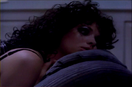 Short films tend to lend themselves to more narrative experimentation than feature films given the amount of time and money involved, and one of the most unusual efforts you'll come across on that front is Beneath the Veneer of a Murder, an eight-minute combination of pseudo-snuff exploitation and heady radio play-style thriller from director Angel Connell, who's been doing shorts like "She's So Cold" and "Stocking Stuffers" for the past couple of decades. Only two people actually appear on camera, Eric Scheiner and Christy Scott Cashman, for the sole live action scene in which a woman is murdered in front of a television set. However, the rest of the film involves onscreen quotes and voiceover telephone convesations laying out the action before and after, involving a political bigwig and an odd marital scenario that twists around to something a little different than your average thrill murder. It's a pretty audacious structural decision that will probably alienate a lot of unprepared viewers, but if you go along with it, this is definitely not your average horror short. You have to focus -- a lot -- to get what's going on in the short running time, so make sure you're paying attention when the opening credits first appear.