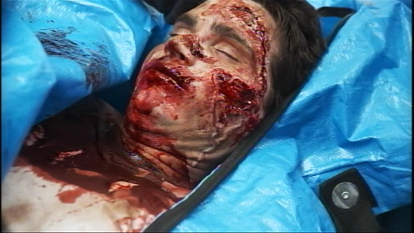 Aspiring horror filmmakers have found a reliable friend in recent years thanks to zombies, an easy way to do a cheap and gory project with a solid chance at finding distribution. Sometimes the results can far exceed the limitations of their budgets, while others, well, don't. Easily at the cheapest end of the scale is Ground Zero, a shot-in-SD offering from Shock-o-Rama about a cleaning crew hired to haul a dead body to a warehouse belonging to a bioengineering company. As it turns out, the cargo is a radical extremist infected with a deadly virus, and he may not be all dead anymore. Once they arrive, the cargo starts to thaw out, and the gutmunching begins. Horror short director Channing Lowe gives it a good shot here, and with better equipment the results would probably be easier to appreciate as there are some nice gore effects here along with a few solid performances from the very tiny cast, especially Mike Langer and Sahna Foley as the two cleaners in way over their heads. (The majority of the supporting cast, well, not so much.) The last third in particular really picks up steam and indicates promising things to come, as it sets up a few nice twists and queasy character situations. Just hand these guys better lighting and sound equipment, and they might be onto something. Extras include a 19-minute look behind the scenes (covering everything from digitally augmenting zombie eyes for the actors to more practical effects like squibs and vomiting) and a 10-minute reel of bloopers and making-of outtakes.
