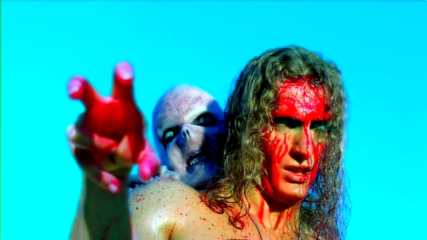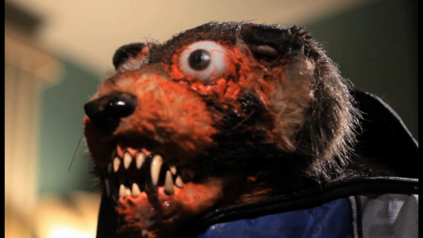 The title beast (a bloody, bug-eyed stuffed animal) is barely shown, but that definitely isn't the case for the main feature, which opens with a quick recap of the first film before jumping into the main story (thankfully shot with better cameras). The media's jumped onto the story and causing unease among the cops and politicians, with the deputy mayor, Peter Rabbit (yes, you read that correctly), trying to get to the bottom of it -- while Tommy and his pal, "Redeye," try to find a new home. A lot more characters are introduced including a single mom stripper whose son sleeps in a room right behind the stage, a couple of wise-talking hospital orderlies, and the title character's lime green offspring, who make a meal out of a couple of middle-aged hookers in one memorable highlight. The stage is also set for another sequel thanks to two more twists, including a final scene that must be seen to be believed. With that premise, you should know exactly what you're getting into here: low grade DIY camerawork, hammy performances, fake blood aplenty, and lots of personality. Also included are a fun half-hour featurette (including a table reading and premiere footage) and trailers for the main movie as well as Atomic Brain Invasion, Bite Me, Ground Zero, Bacterium, and plenty more. This should be in every single Redbox in America.