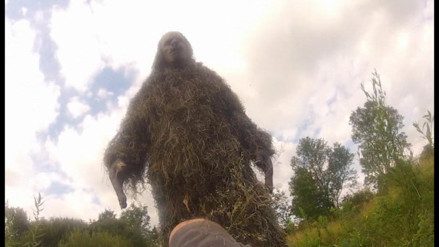 Now we jump to another woodland tale with The Legend of Six Fingers, billed as being "based on the Native American legend of Yá·yahk osnúhsaˀ." This is the slightly more serious follow-up film for director/actor Sam Qualiana, who also brought you the astonishing Snow Shark. Once again this was partially funded through IndieGoGo and has that same labor of love feeling, even though the subject matter is a bit more serious this time around as we dip into found footage territory. Two aspiring documentarians, Neil (Andrew Elias) and Andrew (Qualiana), are reported missing, and through their footage we see how they into the woods to investigate some recent animal slaughters. Evidence points to a mythical creature with three clawed digits on each hand, and along the way they interview some locals including welcome appearances from Lynn Lowry (The Crazies), sporting a southern accent, and Debbie Rochon. Along the way they also have to deal with uncooperative rivers, campfires, drunk college kids, creepy fossils, and their ultimate target, which might be more than it initially appears.