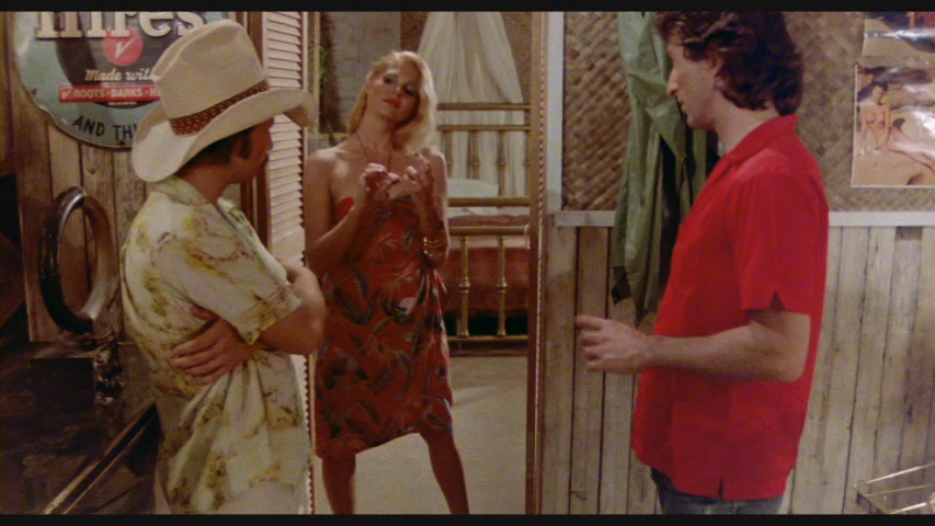 Of course, this wouldn't be a Sick Picks without a little vintage smut thrown in, and this time we have another immaculately remastered pairing of early '80s offerings from Vinegar Syndrome on one DVD, both directed by the prolific Bob Chinn. First up is Sadie, a colorful, stagebound updating of W. Somerset Maugham's Miss Sadie Thompson (most famously filmed with Joan Crawford as Rain in 1932). Here the action shifts to 1971 in Borneo as prostitute Sadie (Talk Dirty to Me's Chris Cassidy) contends with a bunch of new arrivals during the rainy season as a bunch of passengers get stranded on the island. The women aren't happy being under the same roof with a "cheap tramp" like that, especially when her sleazy Vietnam past is exposed by Senator Daniels (Joseph Darling). Meanwhile Sadie has her own bedmates to keep satisfied, while the senator thinks she's still one of the "children of the lord." Shot with lush colors and better dramatics than usual, this is a fun slice of overheated hokum complete with blaring '70s rock music and lots of retro production placements. (Keep an eye on the dog-eared paperback racks.) Even at 74 minutes, there actually isn't as much sex as you'd expect; the plot winds up taking up a sizable amount of screen time, with the couplings only popping up every 15 minutes or so. A fun little slice of cinematic humidity. The sole extra for this one is the theatrical trailer, comprised almost entirely of different takes and angles than the finished film.