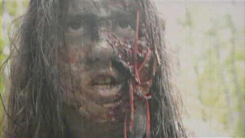 Running nearly two hours, the epic-length (and super-cheap) Zombie Isle is an ambitious attempt to haul the glory days of Fulci and company into the DIY digital age. Unfortunately it's also smothered in that fake "grindhouse" veneer with lots of phony scratches, water stains, and other debris to make it look "vintage," which just comes off as forced and distracting. Anyway, there's this nerdy professor in a turtleneck who rounds up some nubile female students (and some token guys) for a boat trip to a remote island, captained by grizzled, disco-listening guy with a hook hand and an eye patch. Upon arrival they're advised to "use all of your senses" as they split up to document... something or other. One of the girls, Amy, points out that the island hasn't shown up on any maps since 1938, which doesn't seem to surprise the guide at all. Any movie whose first zombie attack has brains getting torn out through an afro can't be all bad, and there's a certain amount of Burial Ground-style fun to be had here as the cast gets wiped out by the shuffling undead. There's also a semi-twist ending culled from a certain '70s favorite known to Blue Underground viewers, and the DVD looks about as good as you can expect given the intentionally distressed nature of the source material.