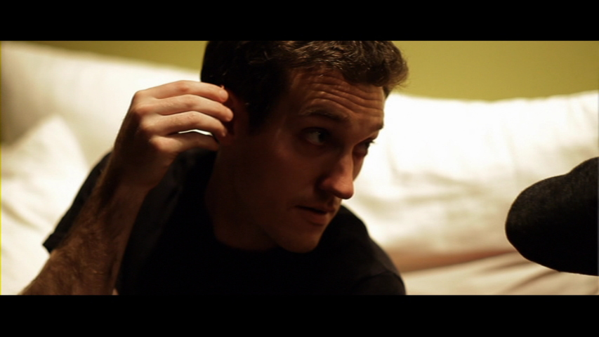 It's impossible to go further than that without going into serious spoiler territory, but let's just say the film packs in some really nifty surprises and features really harrowing, effective performances, anchored by a terrific central turn by Willet (who commands about 95% of the proceedings). Normally low-budget films shot in a single location tend to overplay their hand and show a strain on their resources, but that's definitely not the case here as the film keeps a firm grip on both the story and the technical aspects, which are handled better than virtually any other Hollywood thriller in recent years. If you've been enjoying the wave of inventive DIY shockers like Absentia and The Pact, this one deserves a slot right up there with them. It's a shame Bloody Earth hasn't tried dipping its toes into Blu-ray, as this would've made a fine choice; the SD rendering looks fine, but some necessary written information in diaries and on letters is difficult to make out and would have benefited from much higher resolution. The on-demand HD version fares better but has no extras, and even so a nice full-res version would be good to have someday. The stereo soundtrack works very nicely and accentuates the excellent score by Geoff Gersh. Extras include a pair of commentaries with writer/director Brendan Steere, the first with editor/sound designer Steve Burgess and cinematographer Jesse Gouldsbury and the second with Willet. Obviously the tones are very different as we get both a very technical and somewhat lighthearted take at first and then a deeper, more contemplative look at the evolution of the story as it swerves into some truly dark places. There's also the original trailer, a very brief (just under four minutes) reel of very silly behind-the-scenes footage, and the one-minute "Demon's Bite" short, which serves as the goofy horror movie within a movie.