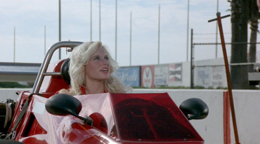 And let's stick with the '80s a bit longer with one of the weirdest of Vinegar Syndrome's Peekarama double features, which encompasses the entire directorial output of one Scott McHaley. We begin with the ambitious car racing melodrama from 1981, Fast Cars Fast Women, which packs a whole lot of action (of all kinds) into 77 minutes. Kay Parker was at the peak of her post-Taboo career here when she starred as Molly, the queen bee of a group of female pro race car drivers including Casey (Carolyn Jackson) and Kristy (Sylvia Benedict). All three women are known to get in each other's pants, sometimes in the shower, but the local syndicate is putting pressure on them with sometimes deadly tactics to try to keep them in line. Meanwhile more than a few men get involved off the track including Kevin James (as the lucky mechanic),