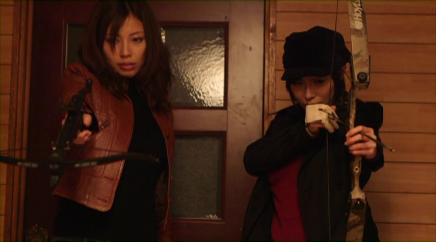 Volume two kicks off with Weekend, in which some men seen burying a body at night in the middle of a rainstorm are also busy on their cell phones looking for a new victim. Their choice is Marin, a pretty blogger looking to make it big as a model who answers their offer for a job out in the mountains under the guise of a cosmetics company called Angel Care. She's brought in by a young guy named Jack (complete with floppy bangs) who butters her up with wining and dining as well as a torrid night of passion, but soon she's being recorded, followed, and taunted by the mask-wearing creeps. It's all part of a nasty snuff ring, which leads to degradation and some eventual retribution by our heroine (wearing a French maid outfit, of course), complete with more cruddy CGI fire effects. Director Yoshikazu Ishii isn't remotely as visually interesting as Shibata here, but he makes up for it with a lot of gore and a pretty rousing climax. As far as snuff-themed horror films go, it's an entertaining time killer and you could certainly do worse. Finally we end in Shibata territory again with Lipstick, which takes its title and a dash of inspiration from the notorious '70s rape/revenge film with Margeaux Hemingway. Here our beleaguered heroine is Arina Goto, a model whose sister works behind the scenes keeping her busy with assignments. However, a modeling shoot goes very wrong when a lunatic fan bursts in wearing a backpack and wielding a sharp knife. Security takes him down and she confides her gratitude to the officer in charge, Gotoda, but things get even worse when a rapist in a black ski mask with a machete breaks into her apartment and forces her to perform a fetish routine with her trademark shade of lipstick. Her pleas to the authorities fall on deaf ears, which forces her to fight for her life in a violent rooftop showdown with her tormentor. Not a bad little quickie thriller, this one has a decent amount of visual flair and a very fast pace, burning through its 70 minutes with a high volume of cheap thrills. All of the films are presented in 1.78:1 anamorphic widescreen in Japanese with optional English subtitles with pleasing visual quality, though Weekend looks the weakest of the bunch.