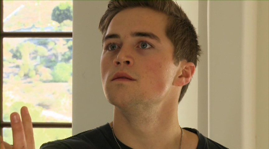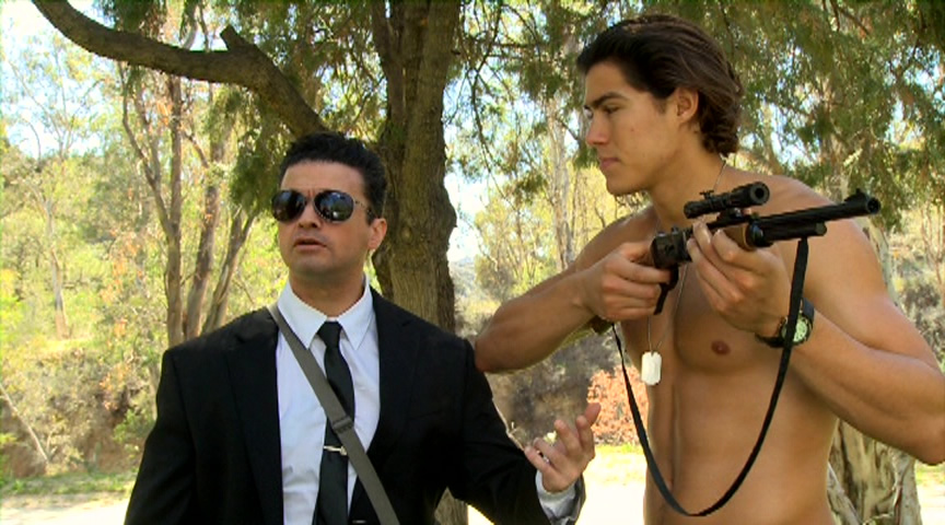 Featuring a bit more of a traditional plot is another DeCoteau horror-ish offering, 666: Kreepy Kerry, which lifts both its title and basic concept from a certain beloved Brian De Palma adaptation of a Stephen King novel. However, in this case the bullied adolescent is a boy, Kerry (Conner Sorensen), who's first seen rolling around groping himself in his tighty whities on a bed. As it turns out this is a special supernatural power he has since his ecstasy can also allow him to control others, specifically the bullies who have targeted him at his new school. (Those same bullies are also prone to spending every minute of screen time shirtless and swimming at their off-campus house, of course.) Anyway, Kerry soon progresses to mind control through other means, namely by sticking out his hands and glaring really, really hard, which of course leads to some nasty consequences. Also on hand in the obligatory nostalgic screen queen slot of the cast is Darcy DeMoss (the veteran of Return to Horror High, Reform School Girls, and most notably Friday the 13th Part VI: Jason Lives), who pops up as his well-meaning aunt and headmistress. There are actually a couple of interesting twists on the usual tormented kid formula, though as usual there's quite a bit of amusement to be found in the high drama and wildly uneven acting on display. The audio commentary by DeCoteau on the Rapid Heart DVD (which also has a trailer) is one of the stronger ones from the 2014 batch as he talks about how this was made after but came out before the first 666 film (Devilish Charm) and his happiness with the end result, which was put together in a breakneck two days of production.