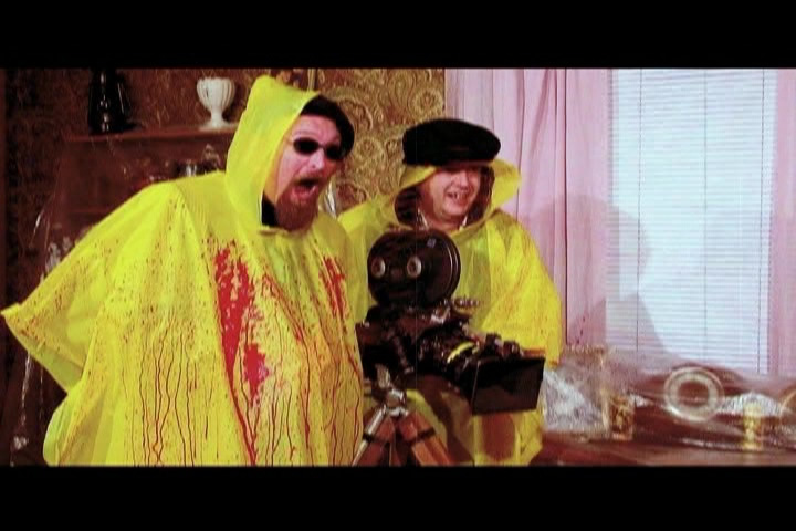 like a little more Canadian horror, indie filmmaker Kevin Doherty and his company Magic Toaster Productions have been producing some quirky terror titles himself. For example, there's Lights, Camera, Blood!, a sort of riff on what it might be like if Andy Milligan were still alive and trying to stage a comeback. Here we have a long-struggling genre impresario named Mandalor, who tries to pitch his latest blood-drenched offering to Gorrific Pictures and its head honcho, Mr. Gelstein. Aided by his hunchbacked director of photography, he pulls himself up by his bootstraps and tries to make something more commercial... only to kill a particularly difficult actress when she refuses to play her scene correctly. The enthusiastic distributor response goads him to bring in more aspiring actors and off them for real, even donning yellow slickers to stay dray when one poor sap gets his cranium split on a couch. However, a concerned girlfriend and swarming cops turn out to be a major obstacle to realizing his magnum opus. Unlike some of its counterparts, this one nails the scratchy film look of early '60s gore films right down to a tee; you could easily be fooled into thinking this was a Something Weird title pulled out of a dusty movie theater basement. The wood-paneled interiors and oddball wigs are straight out of classic H.G. Lewis, and the old school splatter effects are an absolute joy to behold. Then there's the costumes, a cavalcade of late '60s fashions impeccably chosen from the finest thrift stores, and a crimson-soaked finale you have to see to believe. Running 82 minutes, it comes on a feature-only DVD in a flat 1.85:1 transfer. Considerably more compact is the 22-minute Doherty short film, The Jogger, which stars Dan Baker-Moor (also seen in the previous feature in a very colorful role) as the title character, who's fighting off declining health (including an uncooperative digestive system) by going out for an early job every morning before dawn. Unfortunately a detour into a filthy public toilet stall turns perilous when he's targeted by a maniac intent on getting in and slicing him up. Both darkly funny and gruesome, it's an imaginative achievement offering what amounts to a one-man show for its lead and a technical challenge with over half of the running time confined to a single stall.