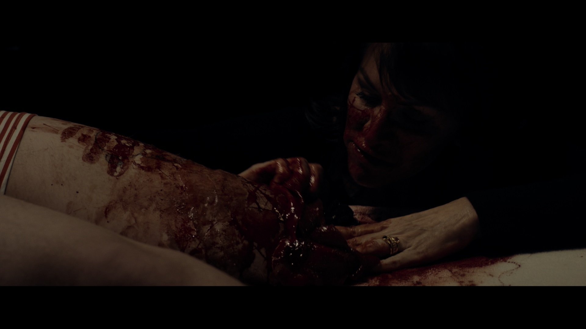 release of the original 1963 splatter trailblazer by H.G. Lewis. A triumph of hallucinatory wooden acting, squishy practical gore, and delightful Florida kitsch, it was followed by the wonderfully deranged unofficial sequel Blood Diner by Jackie Kong in 1987 and an official but so-so sequel by Lewis himself, Blood Fest 2: All U Can Eat, in 2002. (That doesn't even include uncredited imitations like Mardi Gras Massacre, but that's another story.) Then we have the 2016 Blood Feast, which has now gotten a 4K UHD release from Synapse Films because... well, I don't know, but you're getting it anyway. Lewis himself even cameos here as an exposition-spouting professor so this apparently got his seal of approval, with microbudget German slasher director Marcel Walz making his international debut here. With its extremely dark, desaturated, and soft