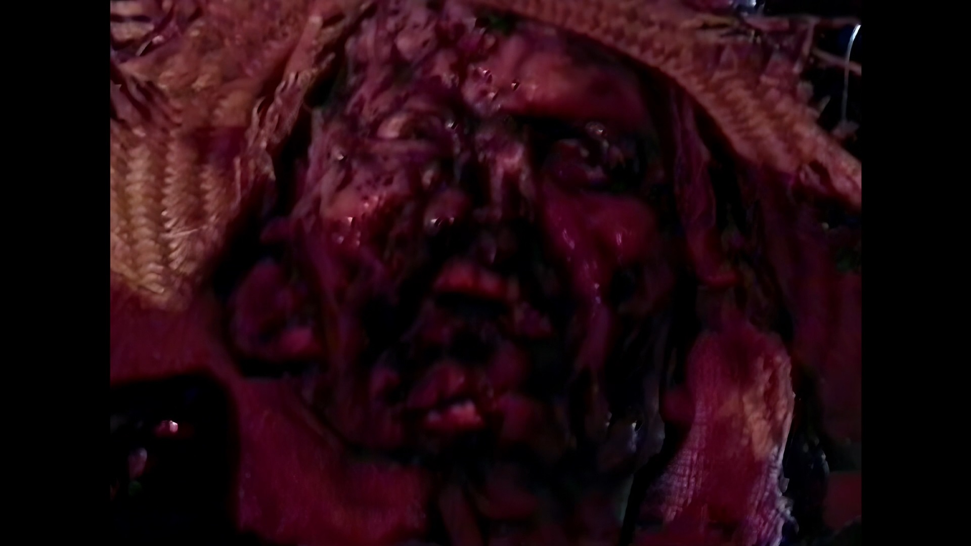 Sub Rosa SOV production barely comes in at 52 minutes and looks like someone drizzled candle wax all over your screen. There's a lot of passion here though in Jerry O'Sullivan's Syracuse-shot scarecrow slasher film about wildly irresponsible young hunter Dan (Jeff Forsyth), who brings some pals out to the woods for a weekend in the same area where he accidentally killed and concealed a guy one year earlier. The only thing around besides the trees is a seemingly harmless scarecrow, but soon the guys are getting strung up and dismembered after night falls. Obviously this is one you need to grade on a curve, but the piles of practical gore effects and caffeinated camera movements make this an amusing love letter to '80s splatter films. As the Blu-ray from Saturn's Core demonstrates,