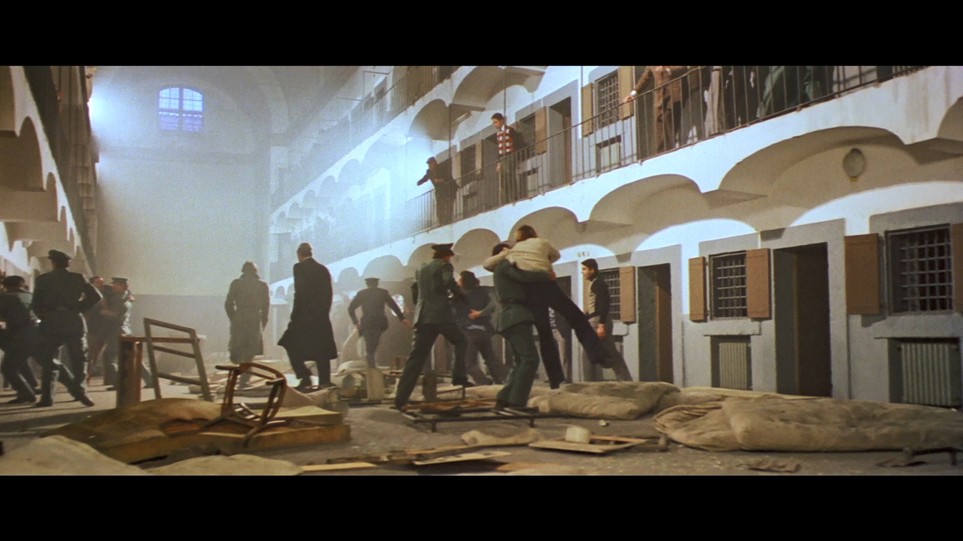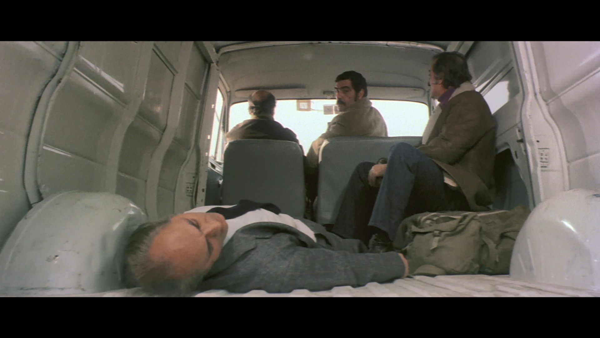 touted as a 2K restoration from the original camera negative, and it's a tough one to evaluate given that there isn't much precedent for this one on home video apart from a German-only 2013 DVD (as Die Killermafia) and an Italian-only one a year later (plus really underwhelming VHS releases from a handful of territories like Germany, Canada, Italy, and Holland). The film has a very earthy, drab look that's presumably true to the original intentions, and frequently soft and chunky-looking at times with a 50i AVC encode; it's basically somewhere in the middle on the spectrum of poliziottesco Blu-rays out there, but given the rarity of the title and the chance to see it in its original full scope presentation, fans should consider it an easy recommendation. Italian and English 2.0 LPCM tracks are included with English subtitles, either translated for the Italian or with just translations of on screen text for the English track. (Note that the language tracks have to be selected from the main or pop-up menus with the subtitles automatically adjusting.) The film was completely dubbed in post-production either way, with the Italian track kinda-sorta matching the actors for the most part; try both and see which one you prefer, as the English dub features a number of beloved and familiar voices from the era.