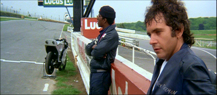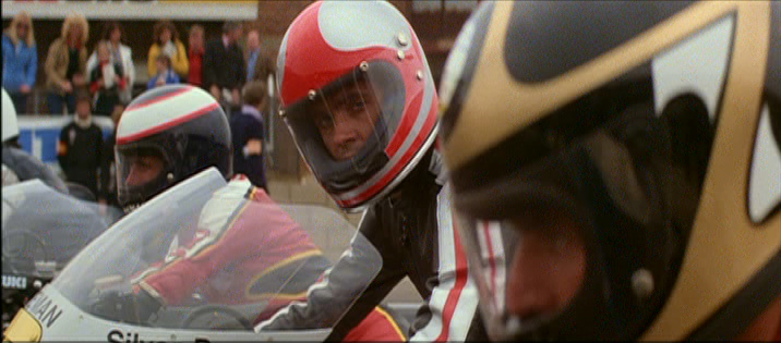 What does that have to do with a 1980 motorcycle-racing movie, you might ask? Well, Silver Dream Racer is the To Be Twenty of sports films. It's impossible to go any further without jumping into spoiler territory, so if you want to stay blissfully ignorant, just skip on to the next paragraph. Anyway, Silver Dream Racer opened in UK screens and seemed like your average Rocky-style, feel good story about an underdog who beats the odds with the love of a good woman. Unfortunately, it also horrified many audience members when, after the expected victorious finale, our hero meets one of the cruelest, most brutal fates ever seen in a PG-rated family title. Rank, the company behind the film, responded to the public outcry by recutting the film, including the wholesale removal of the last two minutes and some crafty editing to turn it into a much more typical climax. This alternate "happy version" was the only one ever seen in the United States (including VHS and cable versions) and even replaced the British cut for its initial DVD release from Carlton in its native country.