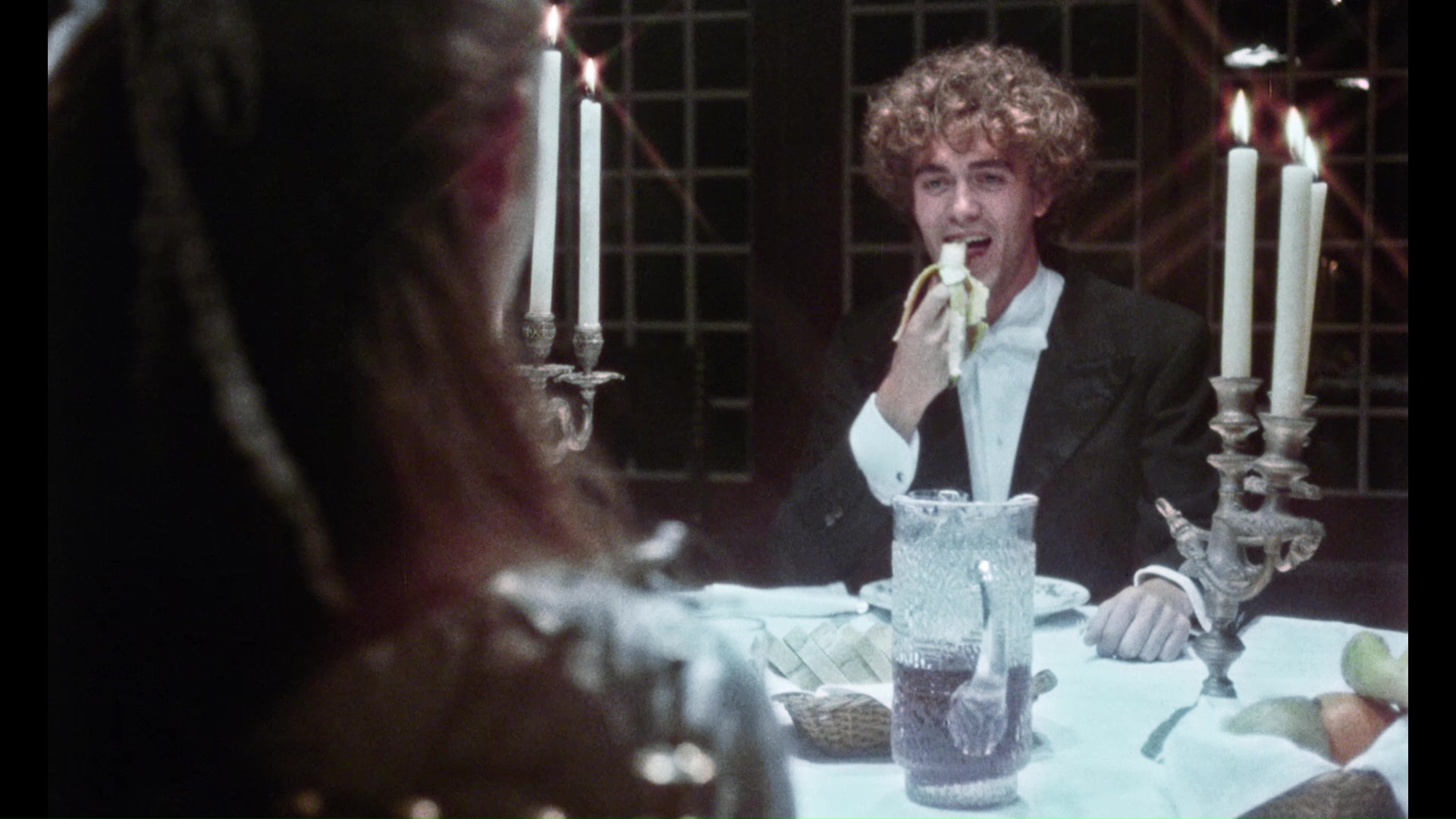 heavy film grain, which tellingly freezes during opticals like the end titles. The Blu-ray handles the demands of the source quite well and looks pleasing in motion, though even the most generous compression in the world would have a tough time with an outdoor afternoon scene halfway through that ladles on the diffusion and grain so heavily it defies belief. The DTS-HD MA Spanish track (looped, in keeping with the practices of the time) sounds perfectly fine for what it is, with optional English subtitles provided. The late Franco appears here for an interview (6m34s) about his first wife, Nicole Guettard, the film's set decorator, with whom he spent twelve years and remained friends until her death from Alzheimer's. The exact chronology here is a little tough to follow, especially when it comes to her medical fate, but it's a valuable snapshot of the director in the final interview session he granted for the label. Also included is a new chat with Stephen Thrower (22m22s), who tackles the film's challenging cinematic style, the unusual nature of its gender combinations for the sex scenes, the questionable nature of the Marquis's very glam earring, and the odd Marquis De Sade elements in the story.