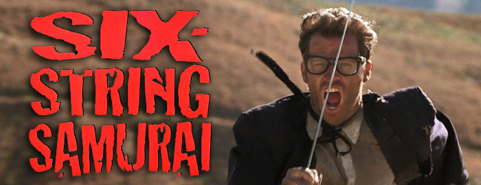 vying to catch on with young arthouse-going moviegoers who had made superstars out of the likes of Quentin Tarantino and Robert Rodriguez, who had made referential moviemaking a new kind of spectator sport in the wake of Pulp Fiction, Reservoir Dogs, and El Mariachi. That meant a lot of films got lost in the shuffle with screens jammed with films like 2 Days in the Valley, The Boondock Saints, Freeway, Killing Zoe, and so on, though all built up admirers to one degree or another. One of the most colorful and eccentric of these was Six-String Samurai, which rode a huge wave of buzz after an ecstatic debut at Slamdance but never quite took off during its release from Palm Pictures (who was really gunning for cult credibility around this time with The Basketball Diaries and Ghost in the Shell). A hodgepodge of references with overt nods to El Topo, The Road Warrior, Lone Wolf and Cub, The Wizard of Oz, and multiple music acts, the film is divisive by nature but has managed to keep up a certain level of fan awareness over the past 23 years in spite of being treated very poorly on video with only a mediocre non-anamorphic release in 1999 representing it on the DVD market. In 2021, Vinegar Syndrome swung the other direction with a vengeance by giving the film a lavish UHD and Blu-ray special