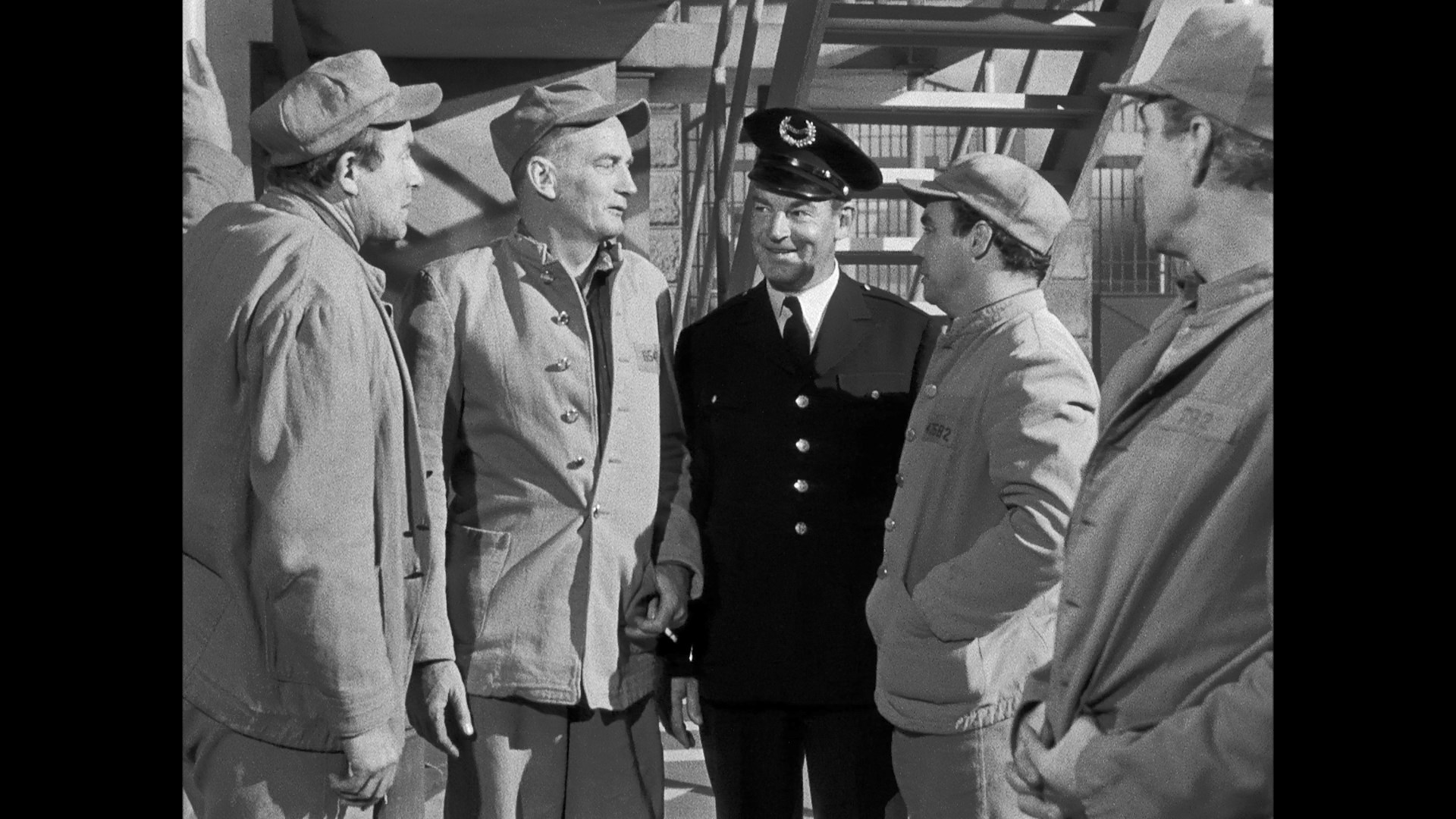 win for All the King's Men). Interestingly, the character of Malloby isn't as vivid here with Mitchell downplaying it more than Boris Karloff's celebrated, star-making turn in the Hawks film. Widely shown on TV for years, Convicted first showed up on DVD in 2014 from TCM in the Glenn Ford: Undercover Crimes set along with Framed, The Undercover Man, The Lady in Question, and Mr. Soft Touch. The Blu-ray features an audio commentary by this writer and Troy Howarth so that obviously can't be assessed here, but hopefully you'll find it worthwhile. Jonathan Bygraves' "Codes and Convictions" video essay is ported over from Indicator's The Criminal Code edition, comparing the various movie incarnations including the elusive Spanish and French-language versions, followed by a hefty 65-image gallery with tons of fun production and promotional stills (including some of the recently departed Martha Stewart). In 1941's So Long Mr. Chumps (17m24s), Curly, Larry, and Moe are street cleaners who are offered a hefty reward if they go incognito to jail to find an innocent man. Good luck following the logic of the premise, but it's another feast of physical gags including the trio doing hard labor smashing rocks while