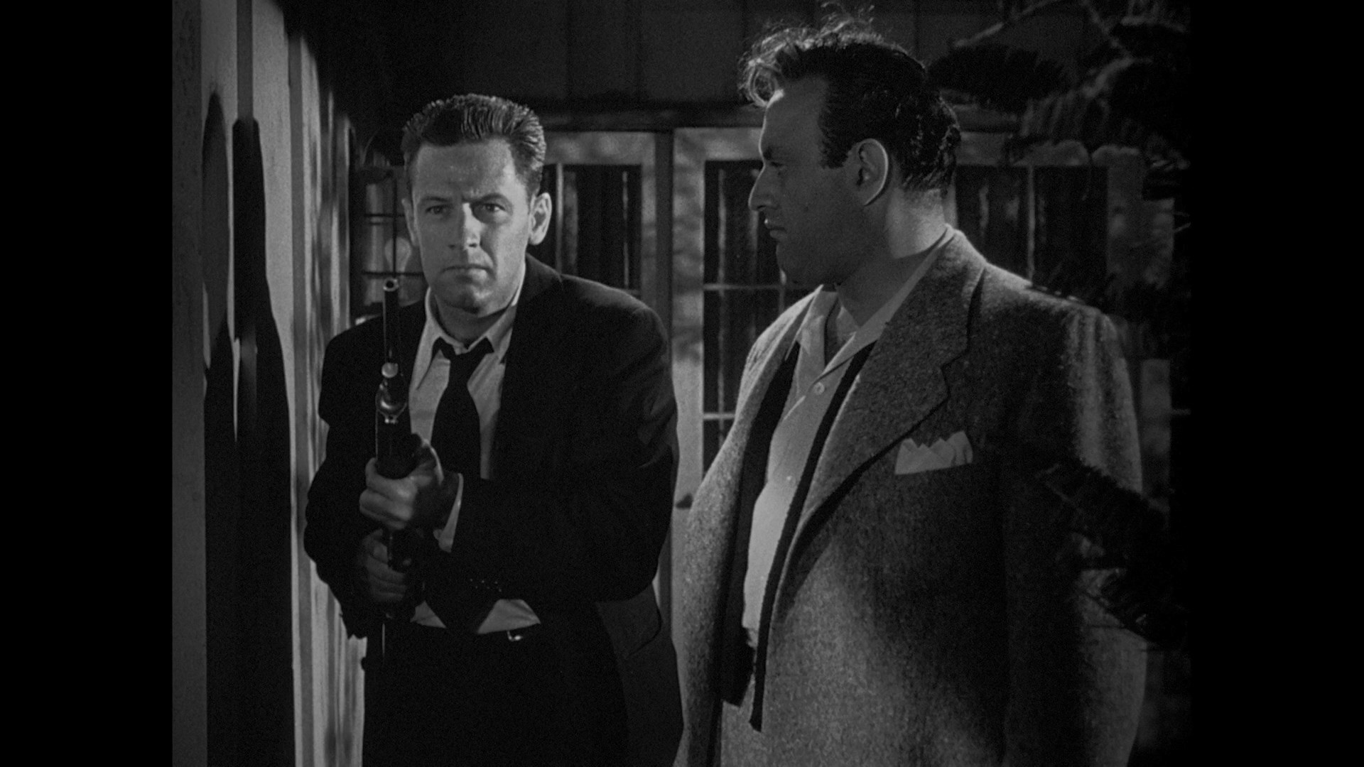 Cobb and Foch also turn up on disc two with 1948's The Dark Past, a noir-flavored home invasion story with a Spellbound-style twist and the first of two remakes in this set (in this case, a redo of Charles Vidor's Blind Alley from 1939). Debating with a skeptical rookie officer about the value of psychoanalyzing a young crime suspect, police doctor Andrew Collins (Cobb) explains his own life-changing experience years earlier when he took his family and had some friends over at a vacation cabin. Their getaway is thrown into chaos when escaped convict Al Walker (Holden) and his cohorts including girlfriend Betty (Foch) break in and hold the inhabitants hostage. However, Collins' keen sense of behavioral observation comes in handy when he gets the chance to pry open his captor's psyche and find out what violent trauma lurks deep inside.