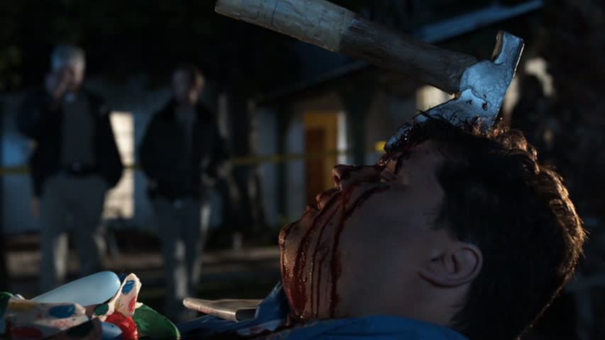While a title this lackluster and a budget this small would be more than enough to torpedo most indie films, Some Guy Who Kills People rises well above its peers thanks to a surprisingly deft and poignant script. You wouldn't normally think a slasher movie could make you smile and feel good about life, but that's exactly what this one aims for (Tucker and Dale vs. Evil kind of plays around in the same sandbox but is ultimately a different beast altogether). It doesn't exactly hurt having a cast of real pros spouting the witty dialogue, either, with In a more theatrical-friendly enivornment this film would've had a shot as a decent midnight title, but as it is most people will have to make its acquaintance with Anchor Bay's DVD release. Shot with RED digital cameras, it doesn't even try for any super-stylish visuals; instead the camera mainly sits back and lets the story unfold while the actors do their thing. Not surprisingly, the transfer looks as impressive as a digital-shot feature can look in SD, while the 5.1 English track has a restrained but effective surround mix including some nice panning effects during the murder scenes. As for extras, director Jack Perez (who has one of the strangest filmographies you'll ever see) is joined by screenwriter Ryan Levin for a brisk commentary whose topics include stylistic nods to The Pawnbroker, the empowering feeling of standing up to Karen Black, alternate concepts for the film's original opening, and the physical consequences of shooting with a RED camera. Perhaps the most interesting extra is "The Fifth," a 12-minute short from 2007 that marked the first Perez/Levin collaboration. The packaging touts this as the short "the inspired the feature," which seems a bit of a stretch as all they really have in common in a comedic approach to gore and the presence of a serial killer. It's a pretty amusing "Funny or Die"-style extended sketch about four poker buddies who bring in a fifth player horrified by the fact that one of them brutally murders people as his day job. Oh, and he's brought a dead body to the game and left a severed head in the freezer. Character actor Sam Lloyd (Galaxy Quest) gets most of the great moments here, and apart from some truly awful ADR work in a few spots, it's a great little supplement. Finally the disc wraps up with some raw behind-the-scenes footage (with lots and lots of fake body parts, plus enthusiastic comments from executive producer John Landis) and the spoiler-ish trailer.